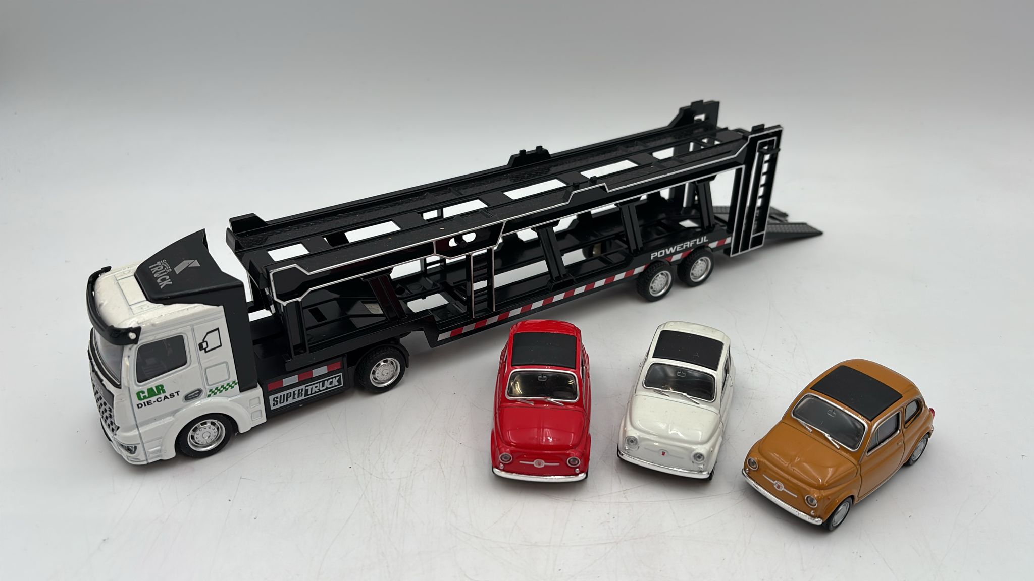 DEAGOSTINI - BISARCA Super Truck 1/50 con tre Fiat 500 1/43 senza scatola |