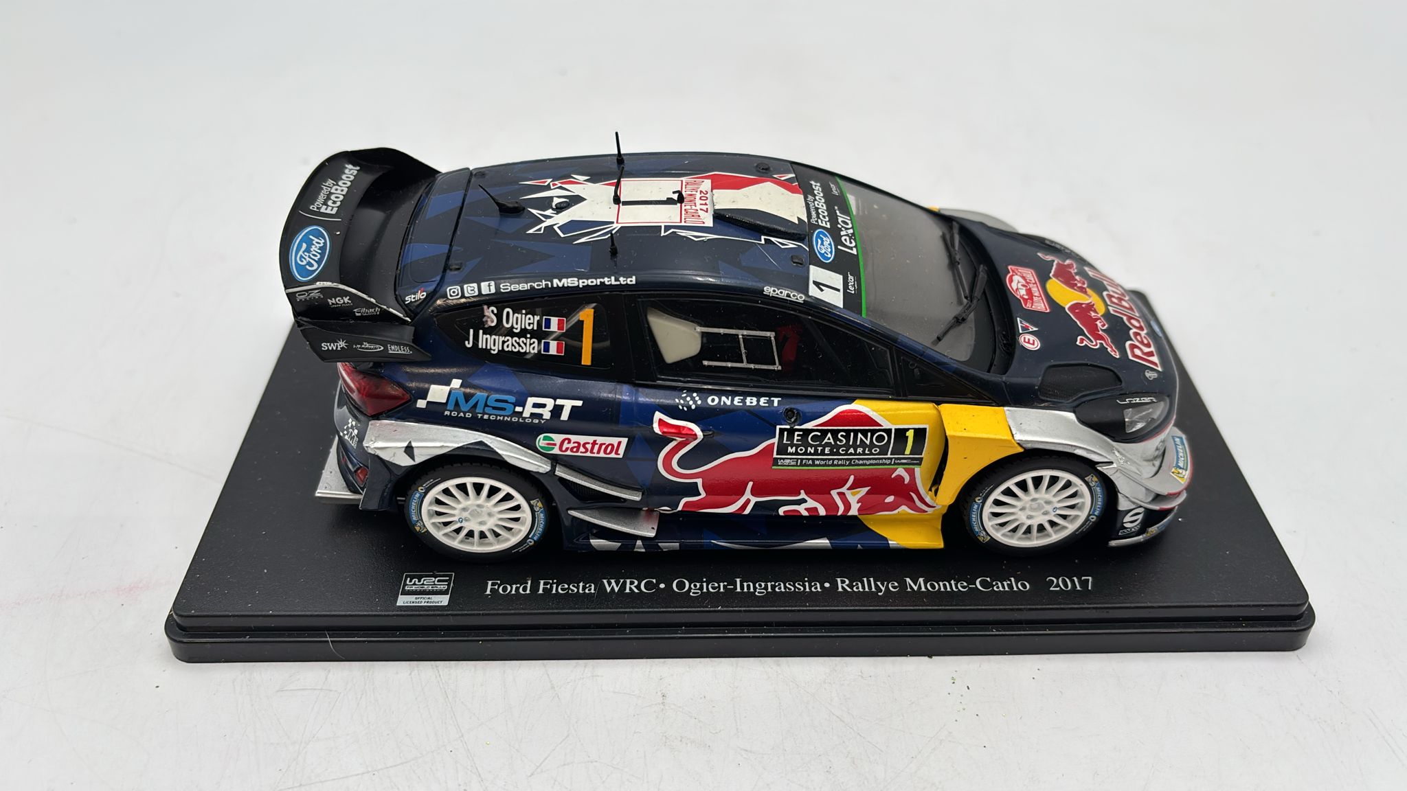 DEAGOSTINI - RALLY Ford Fiesta WRC Rallye Monte-Carlo 2017 1/24 senza scatola originale, manca specchio destro |