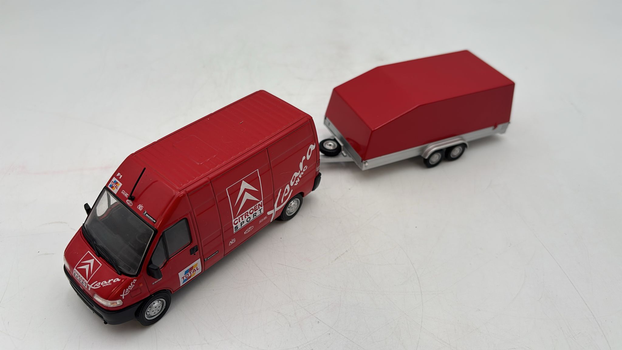 HACHETTE - FURGONE Citroen Jumper con rimorchio 1/43 senza scatola, perno rimorchio rotto |