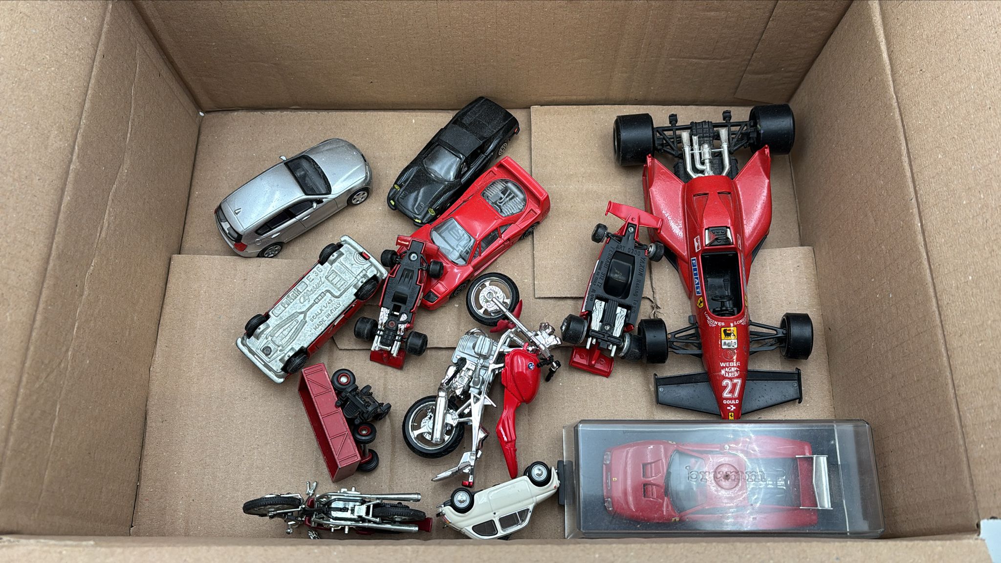 DEAGOSTINI - Lotto di 11 modelli di auto e moto di varie scale, varie tipologie, tutti usati e alcuni rotti |