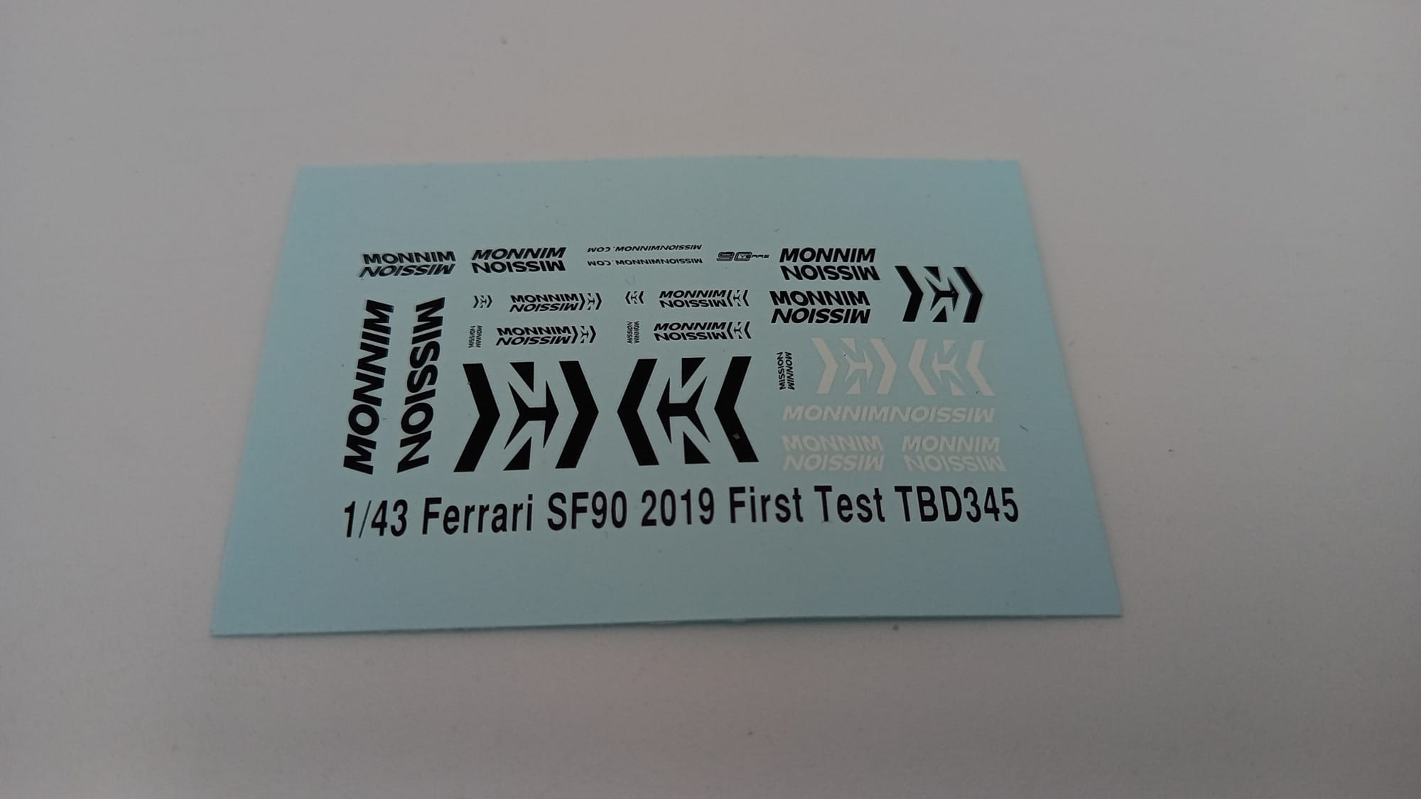 DECALS - F1 320 TBD345 decals per Ferrari SF90 2019 Test MISSION WINNOW 1/43 |
