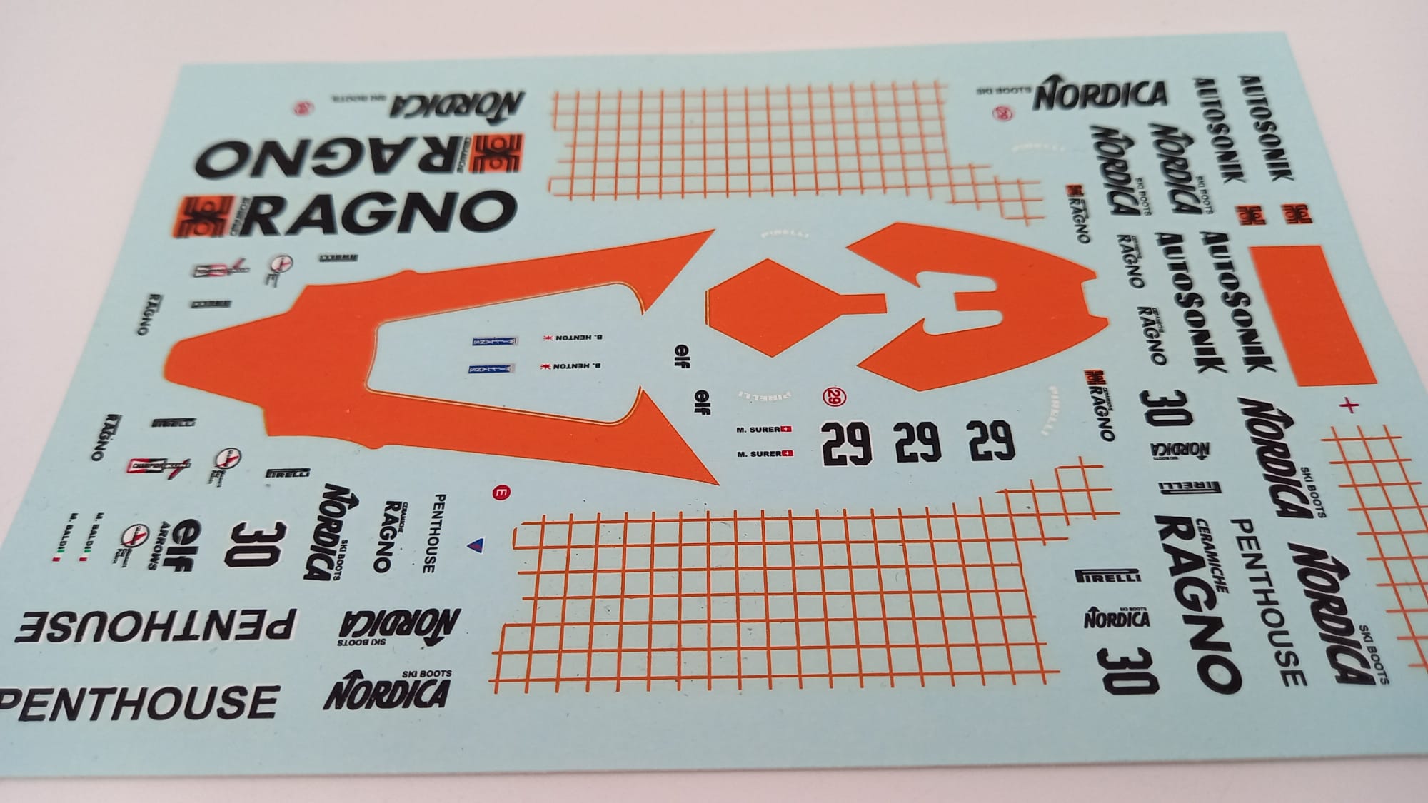 DECALS - F1 343 decals per Osella FA 1F 1/43, lievemente ingiallite |