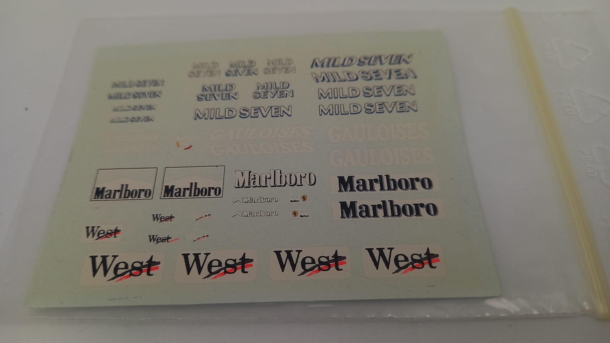 DECALS - F1 347 decals sponsor West, Mild Seven, Marlboro 1/43, lievemente ingiallite |