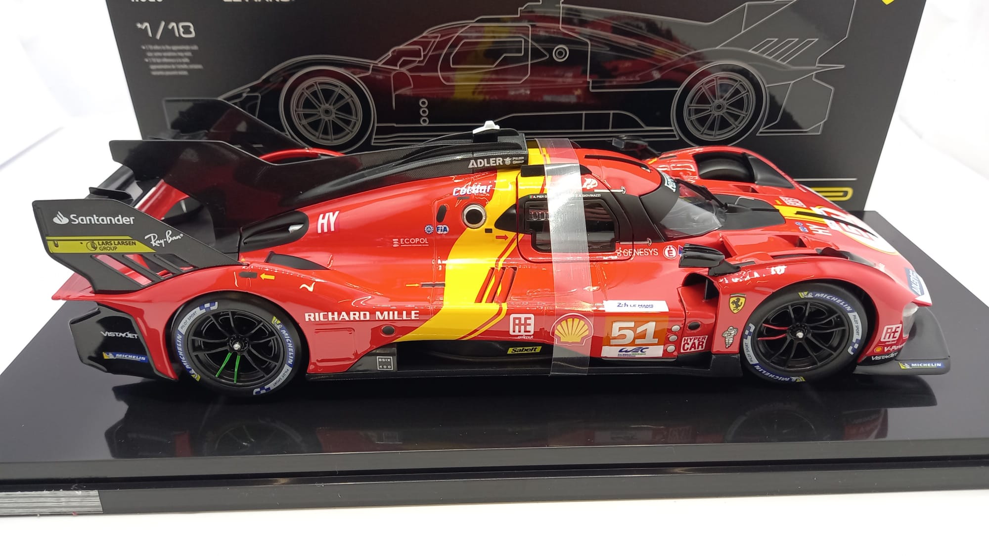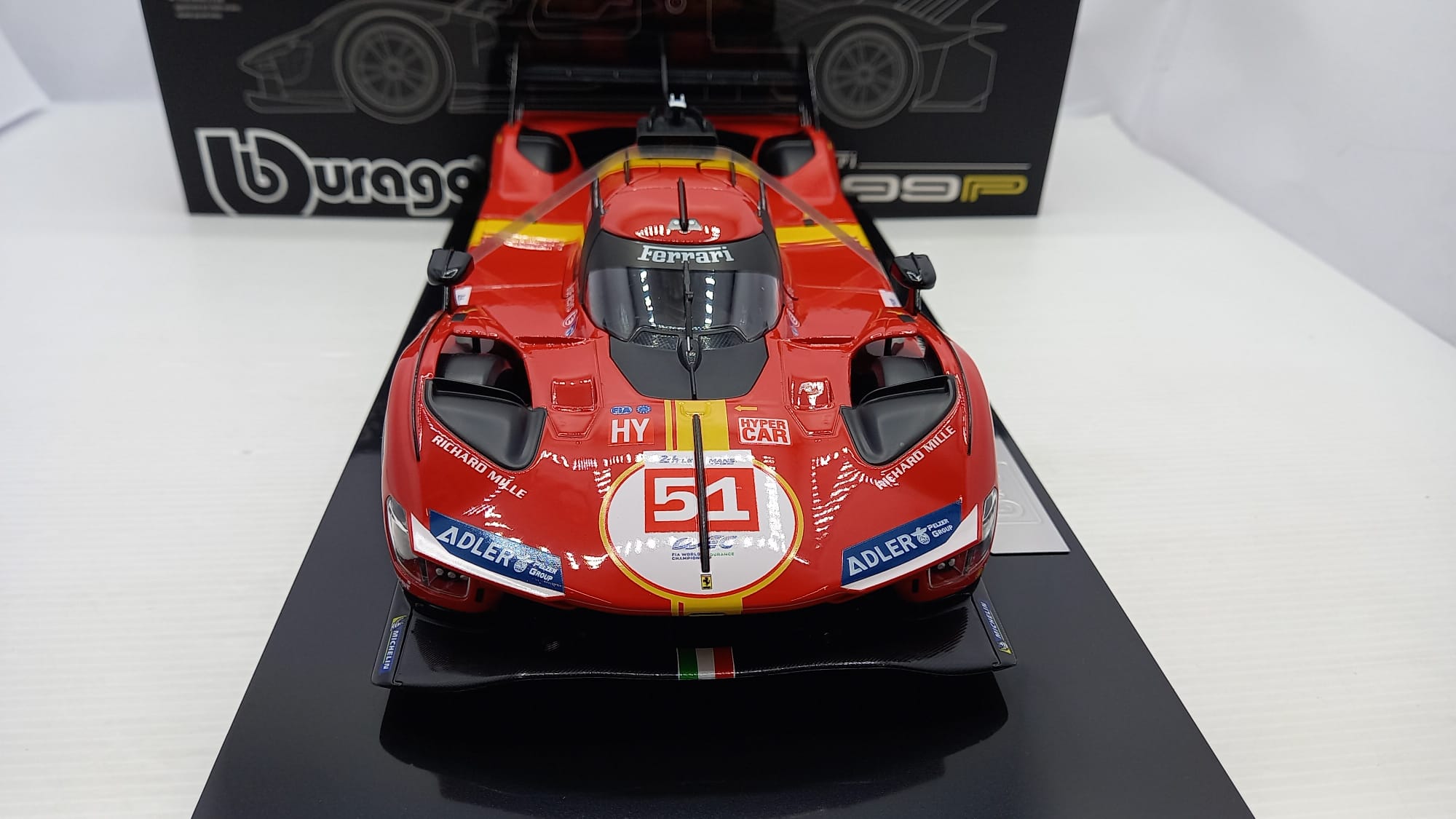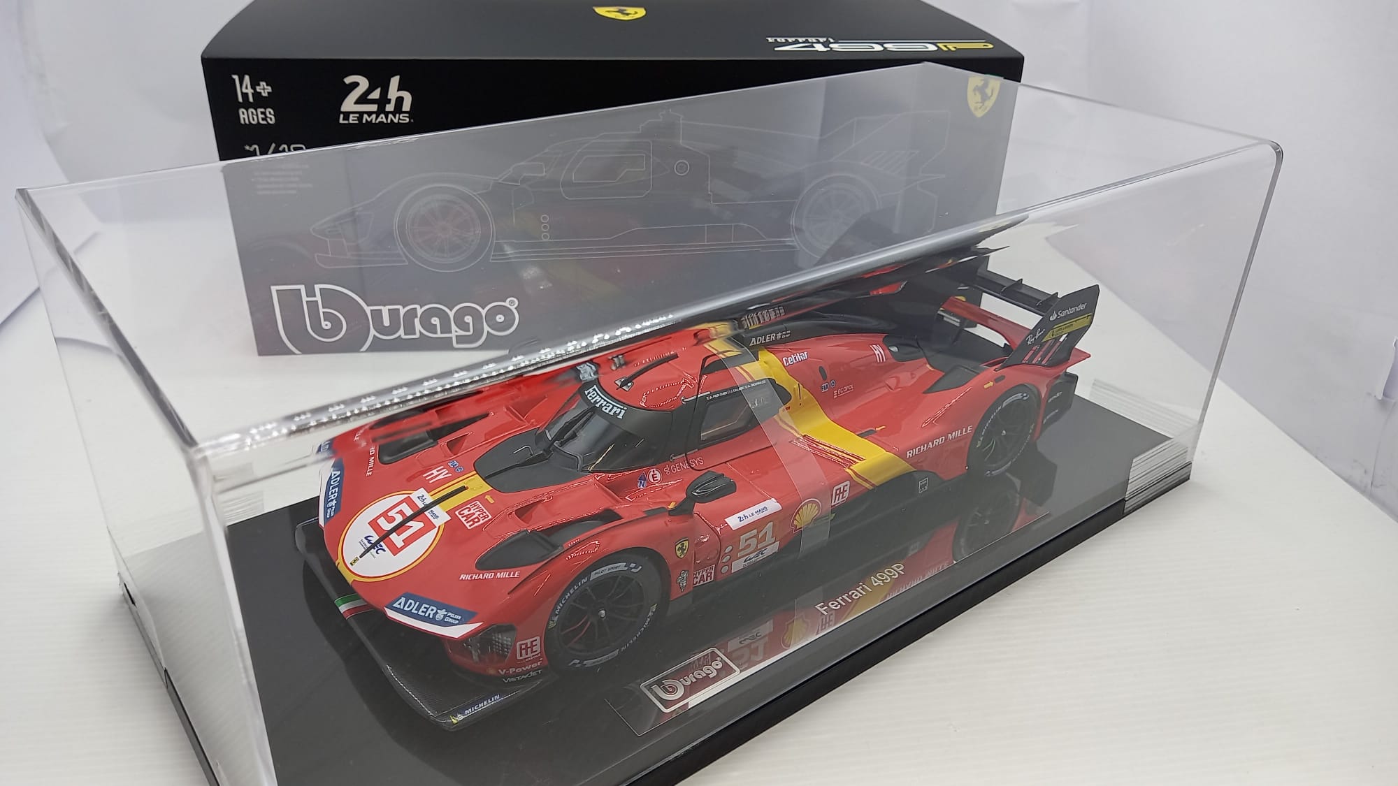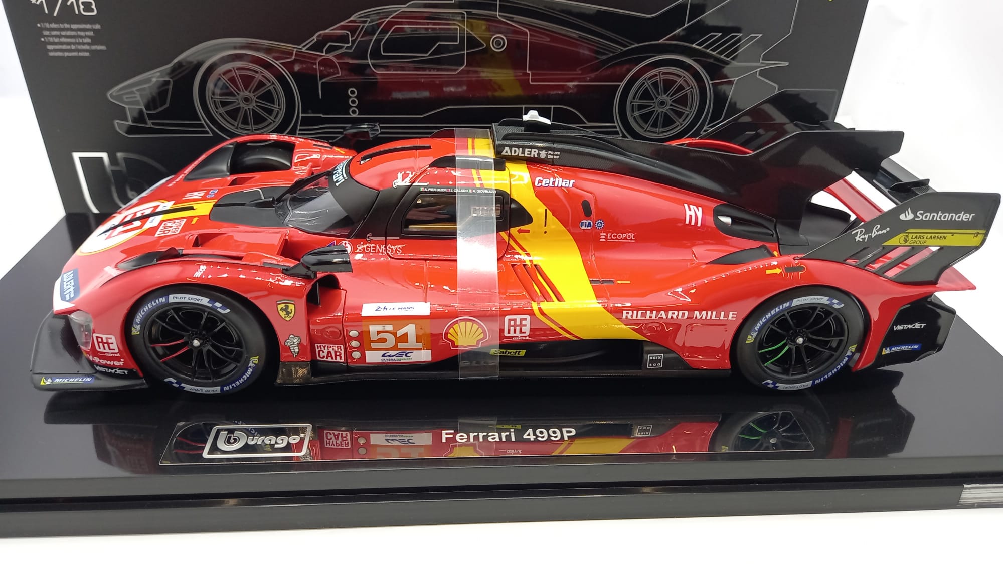 Bburago Ferrari 499P 3.0L Turbo V6 AF Corse winner 24h Le Mans 2023 #51 1/18, con vetrina
