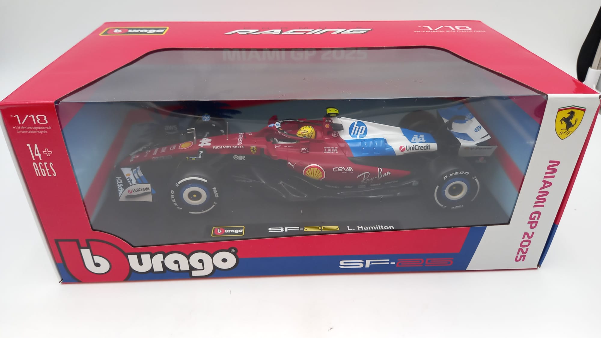 Bburago Ferrari SF-25 Lewis Hamilton Miami GP 2025 1/18