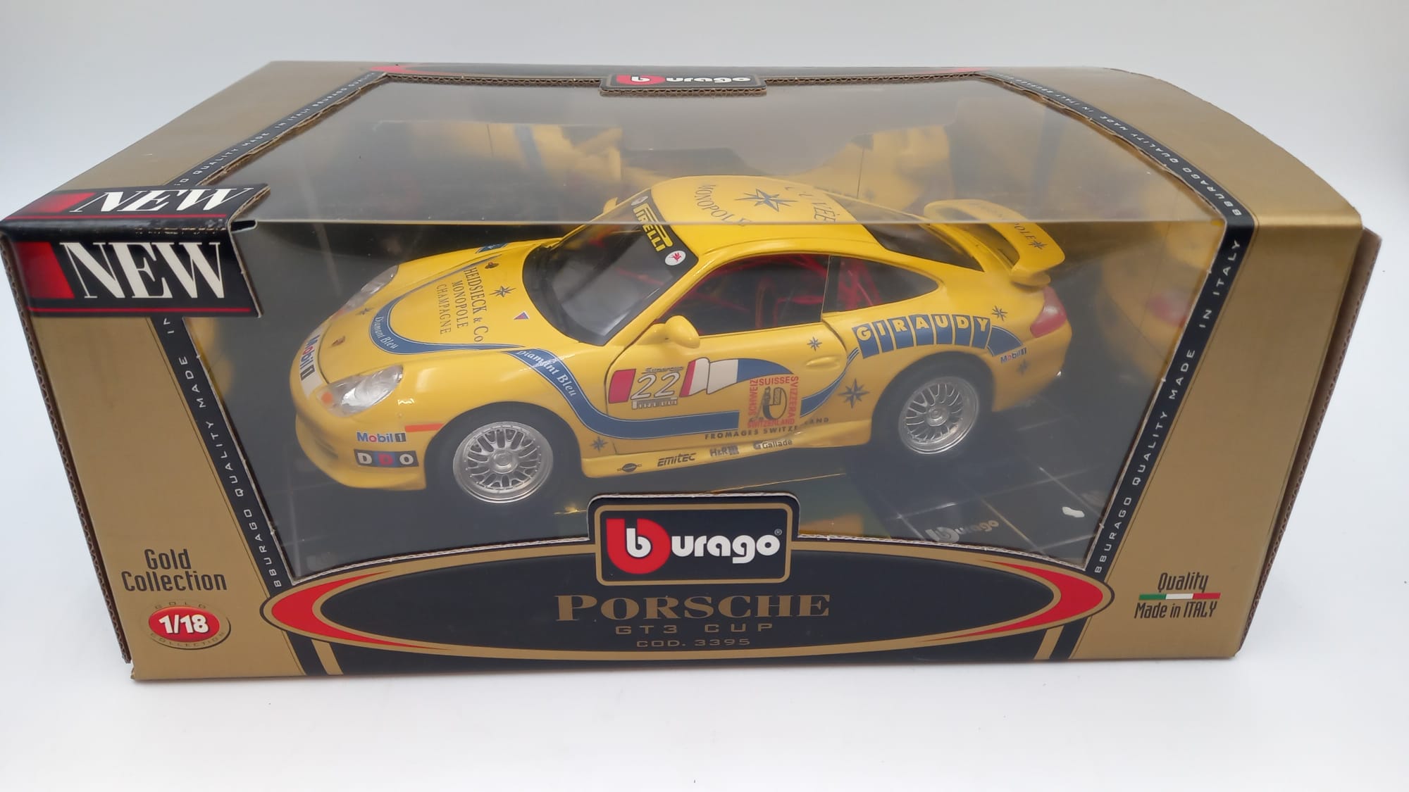 BBurago Porsche GT3 Cup 2002 1/18, scatola leggermente usurata dal tempo