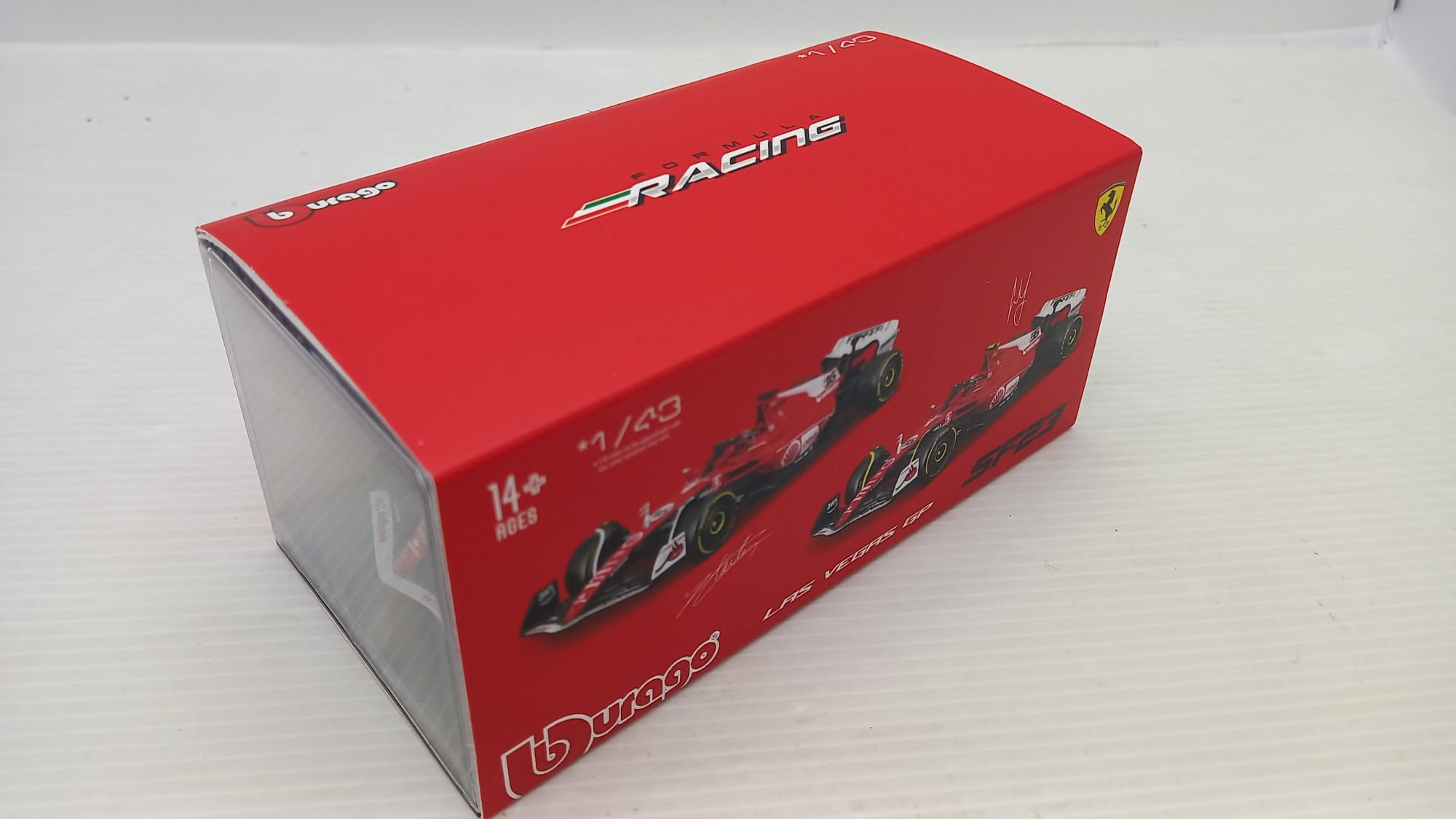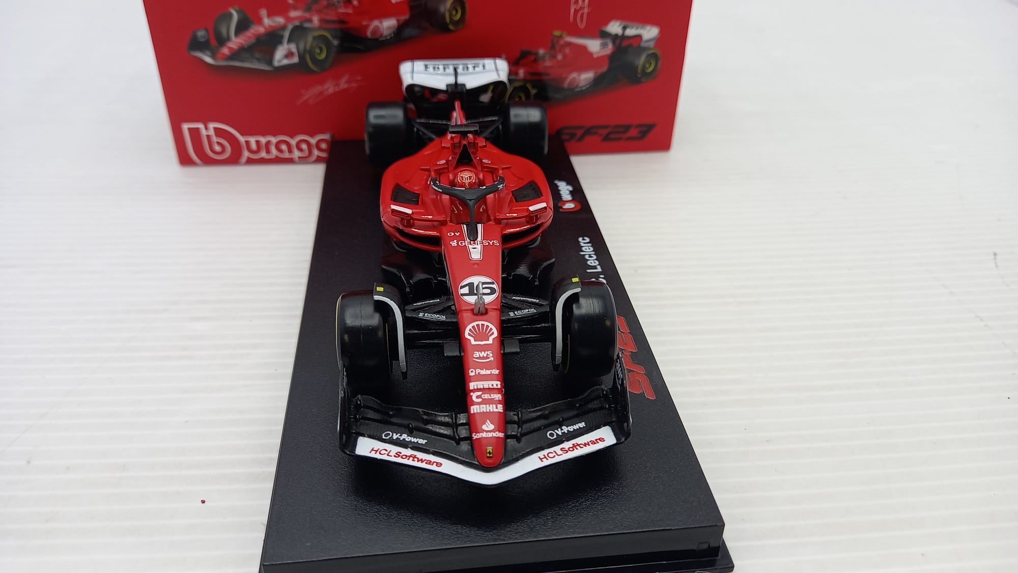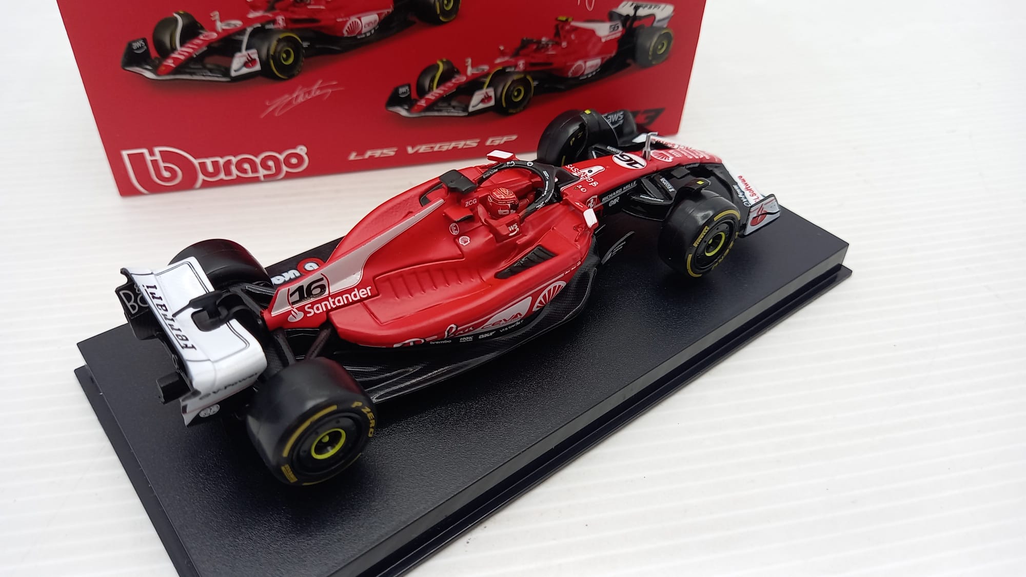 Bburago Ferrari SF23 Charles Leclerc Las Vegas 2023 1/43, con teca