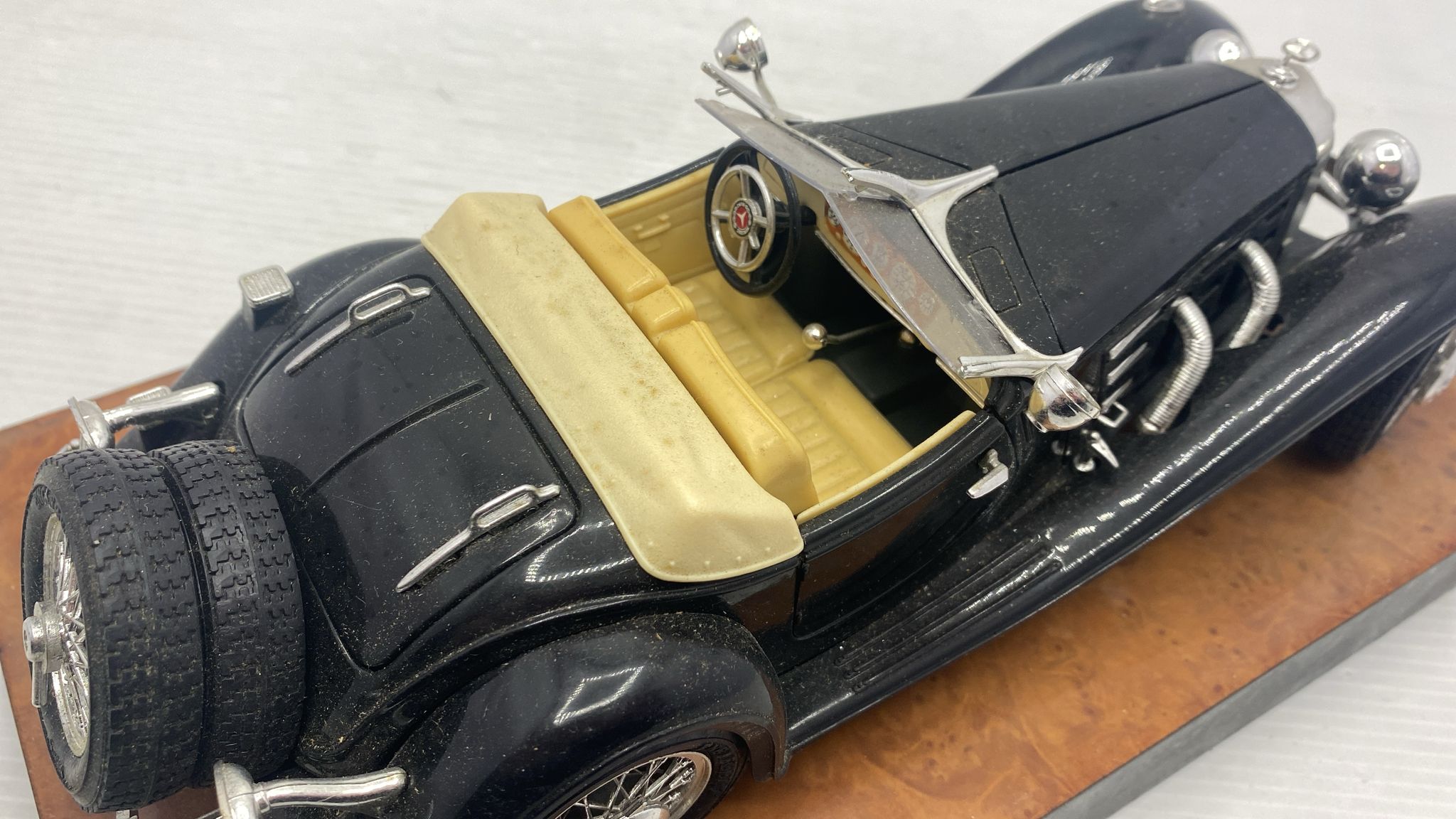 Bburago Mercedes 500K Roadster 1/18 modellino vissuto e con segni di usura e vernice rovinata, senza scatola originale