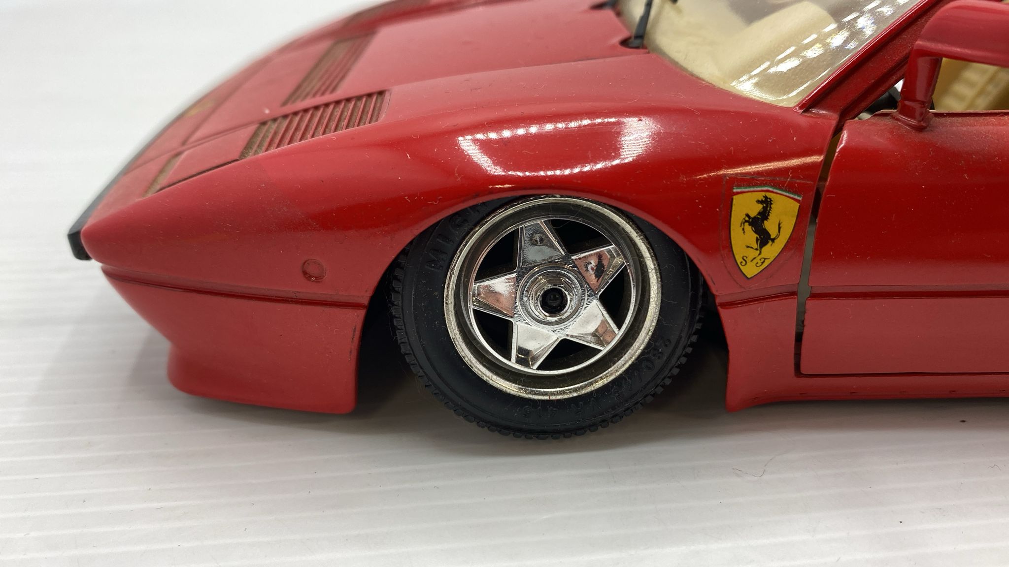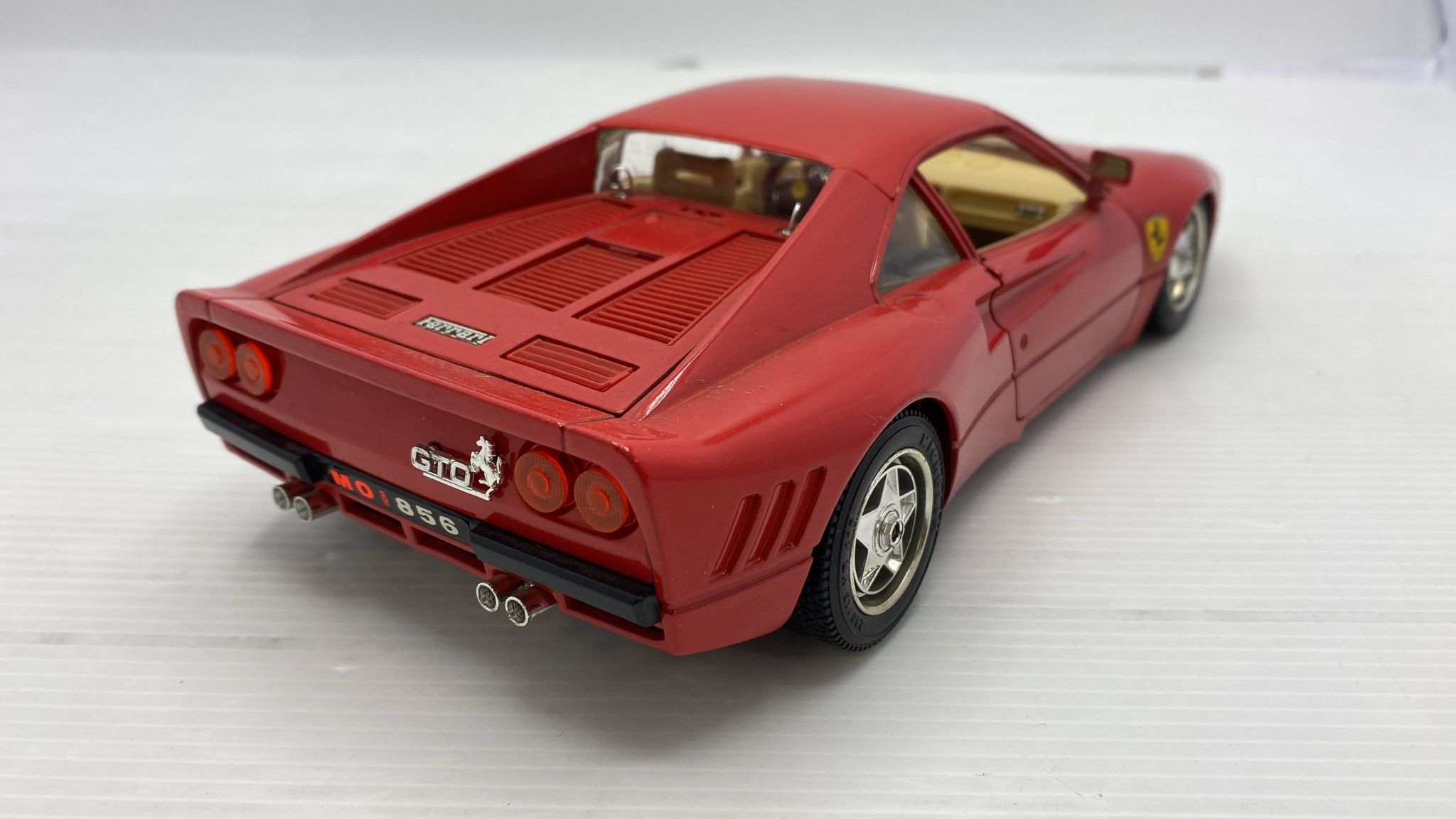 Bburago Ferrari GTO 1984 1/18, senza scatola originale, leggeri segni di usura, ruota anteriore sinistra danneggiata