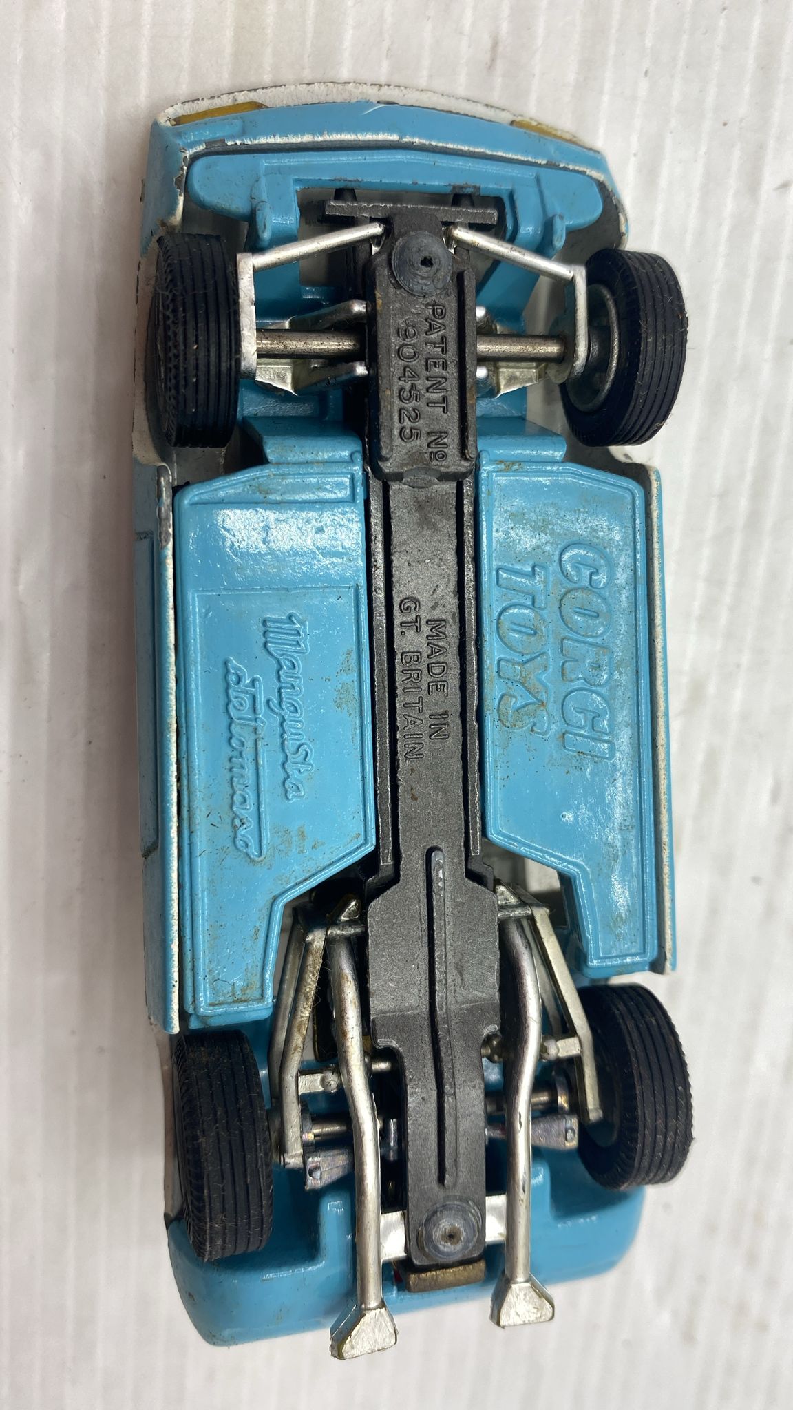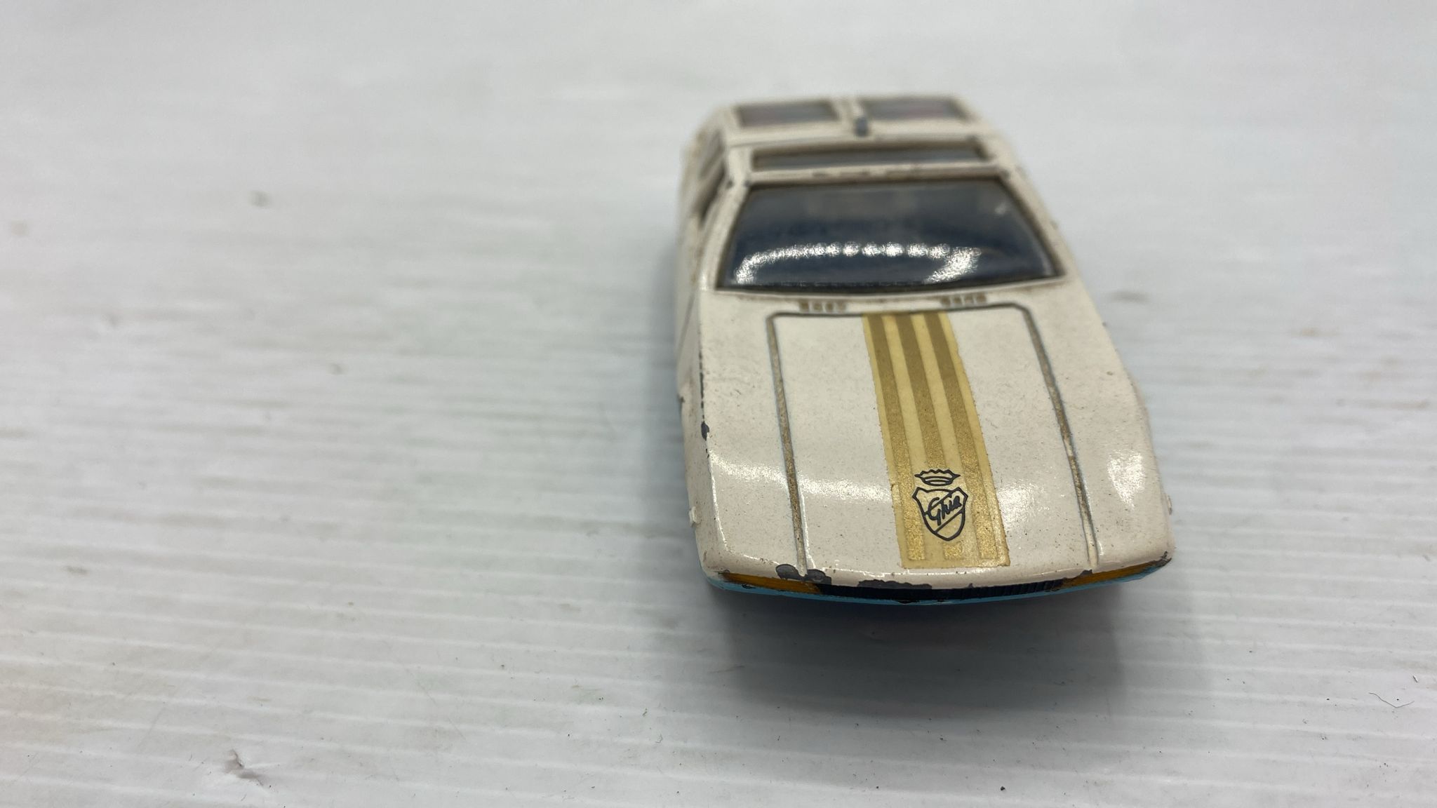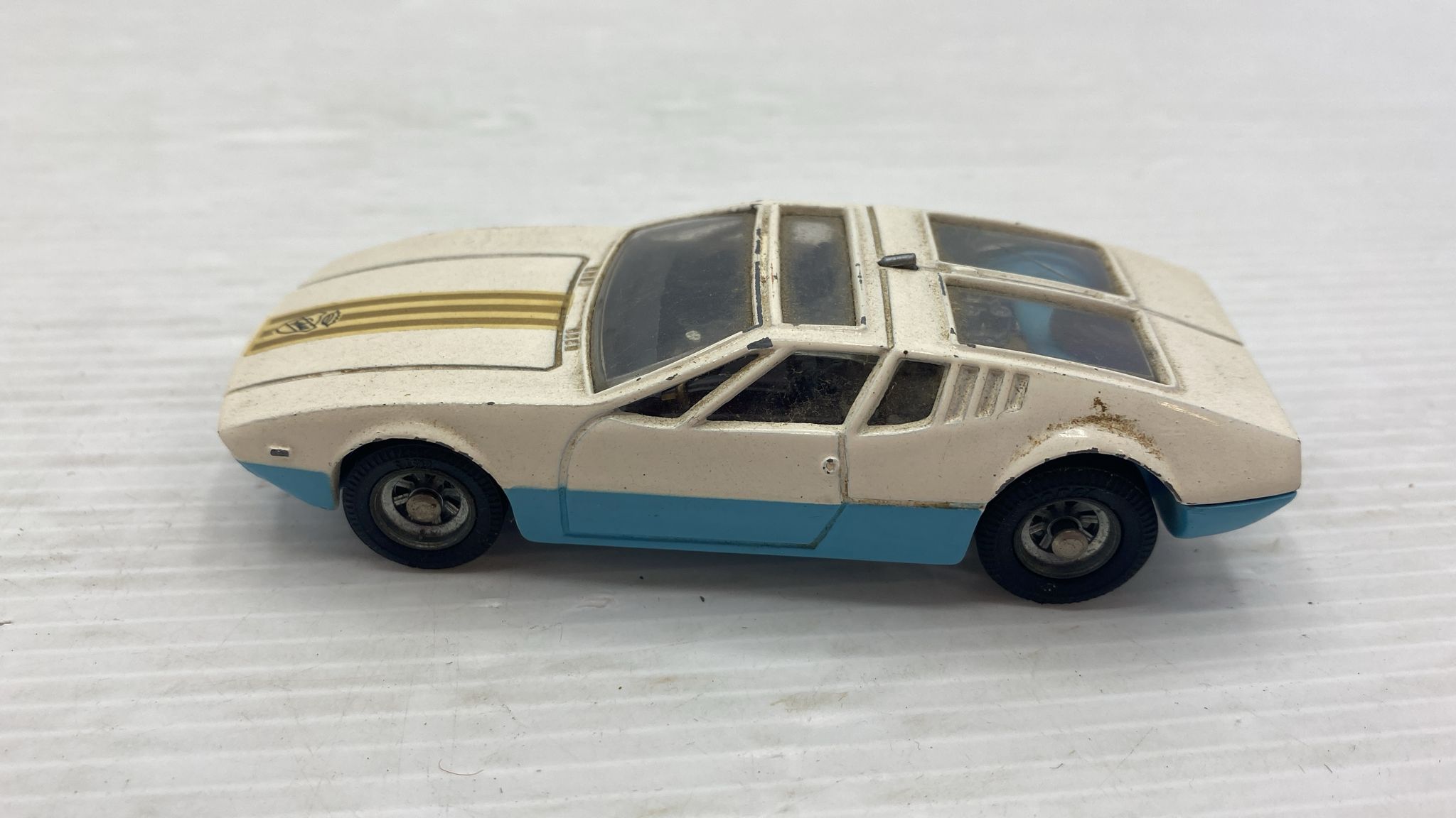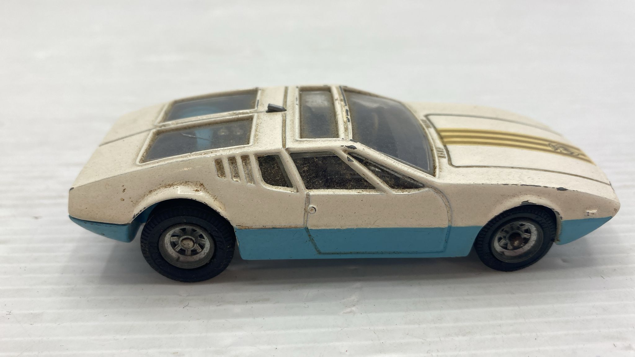 Corgi DeTomaso Mangusta 1/43 modellino vissuto e con segni di usura e vernice rovinata, senza scatola originale