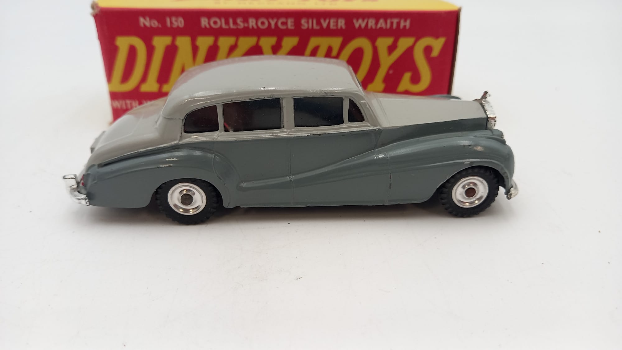 Dinky Toys Rolls-Royce Silver Wraith 1/41, modello in ottime condizioni, confezione lievemente usurata