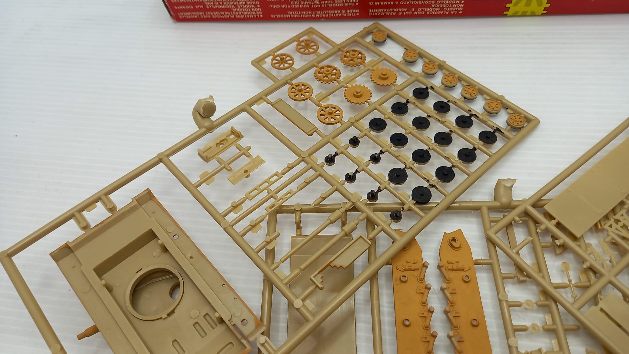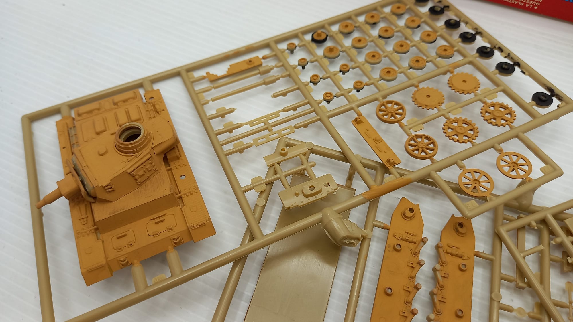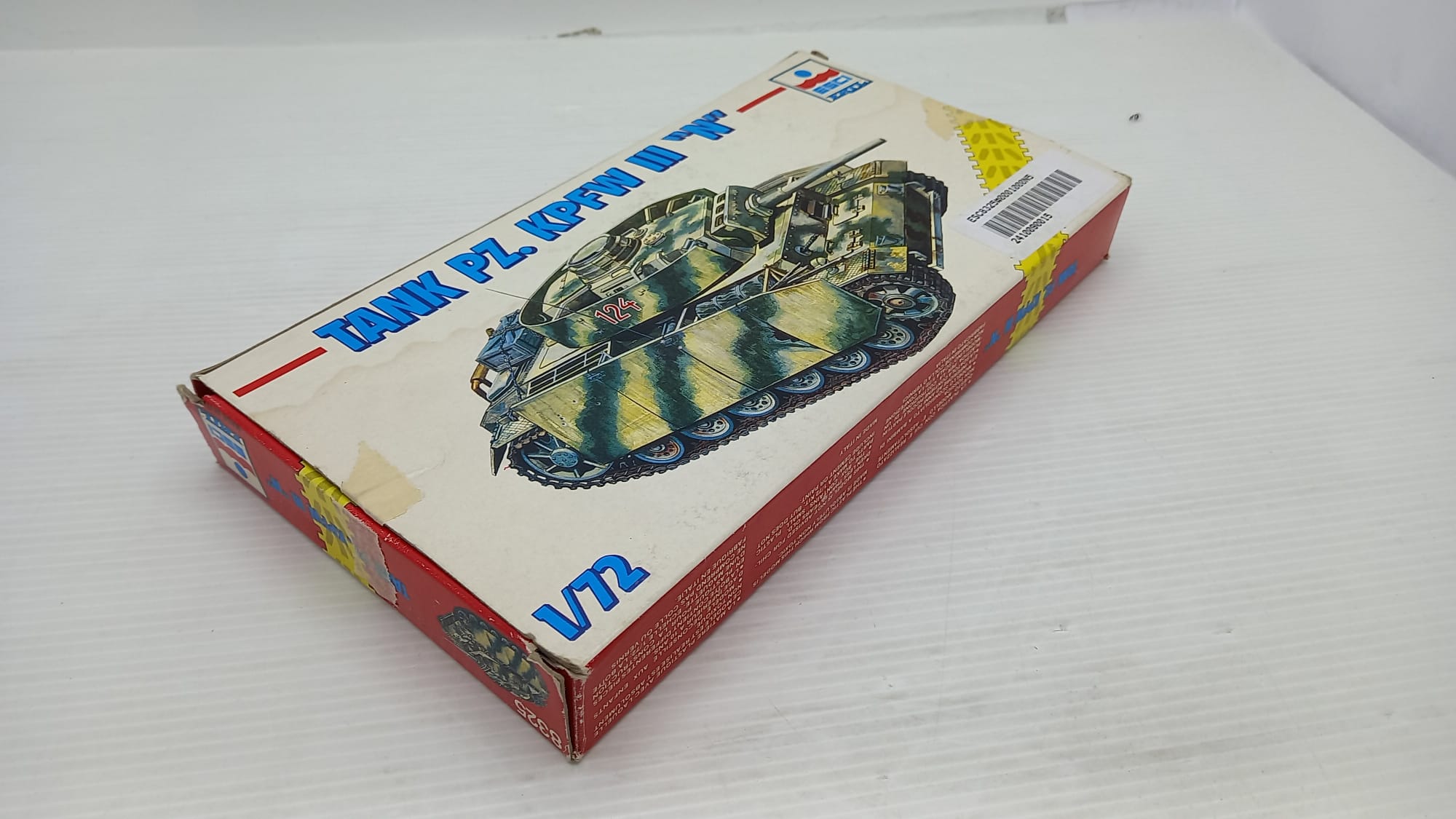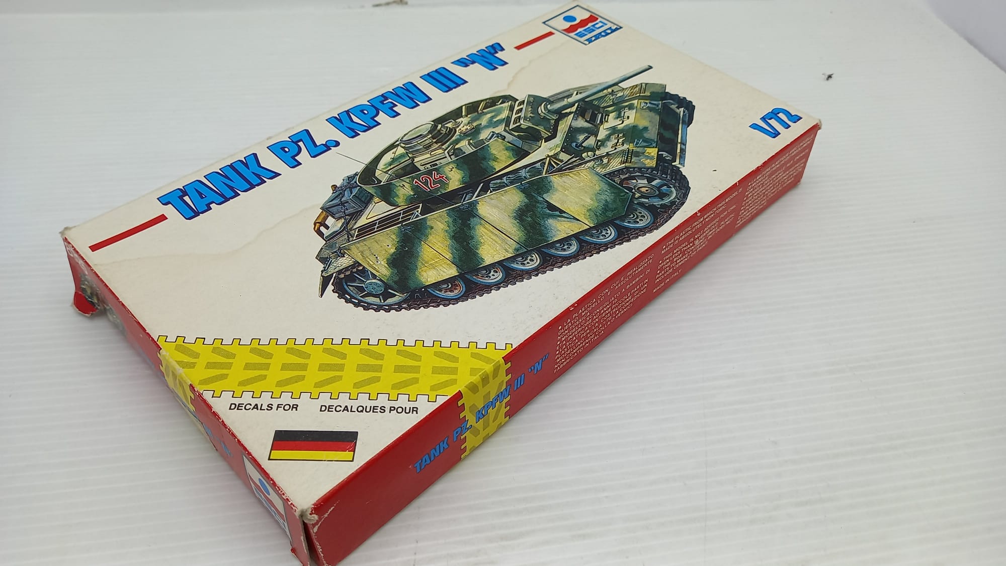 Esci Tank Pz. Kpfw III N 1/72, kit di montaggio già iniziato, scatola usurata