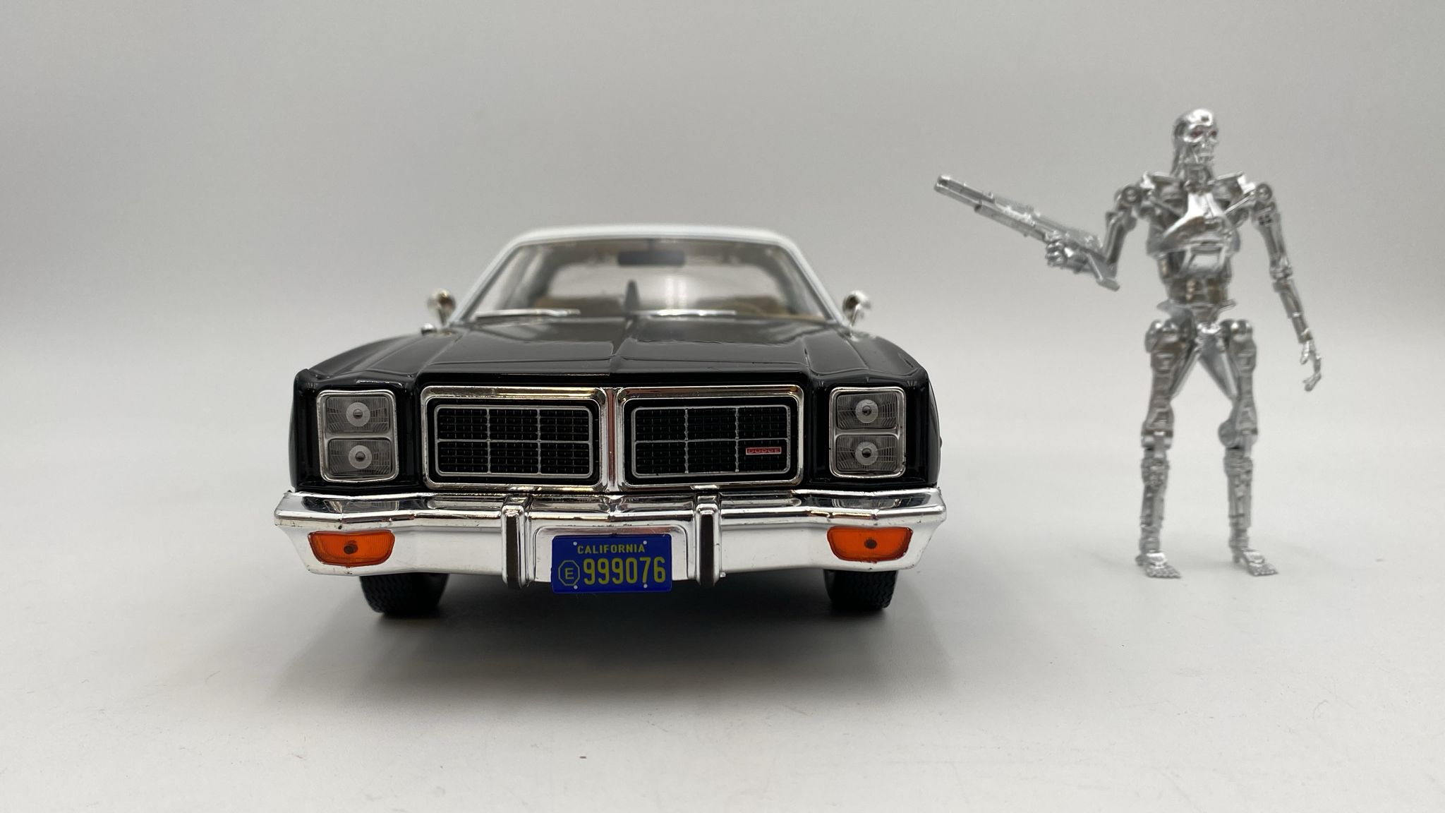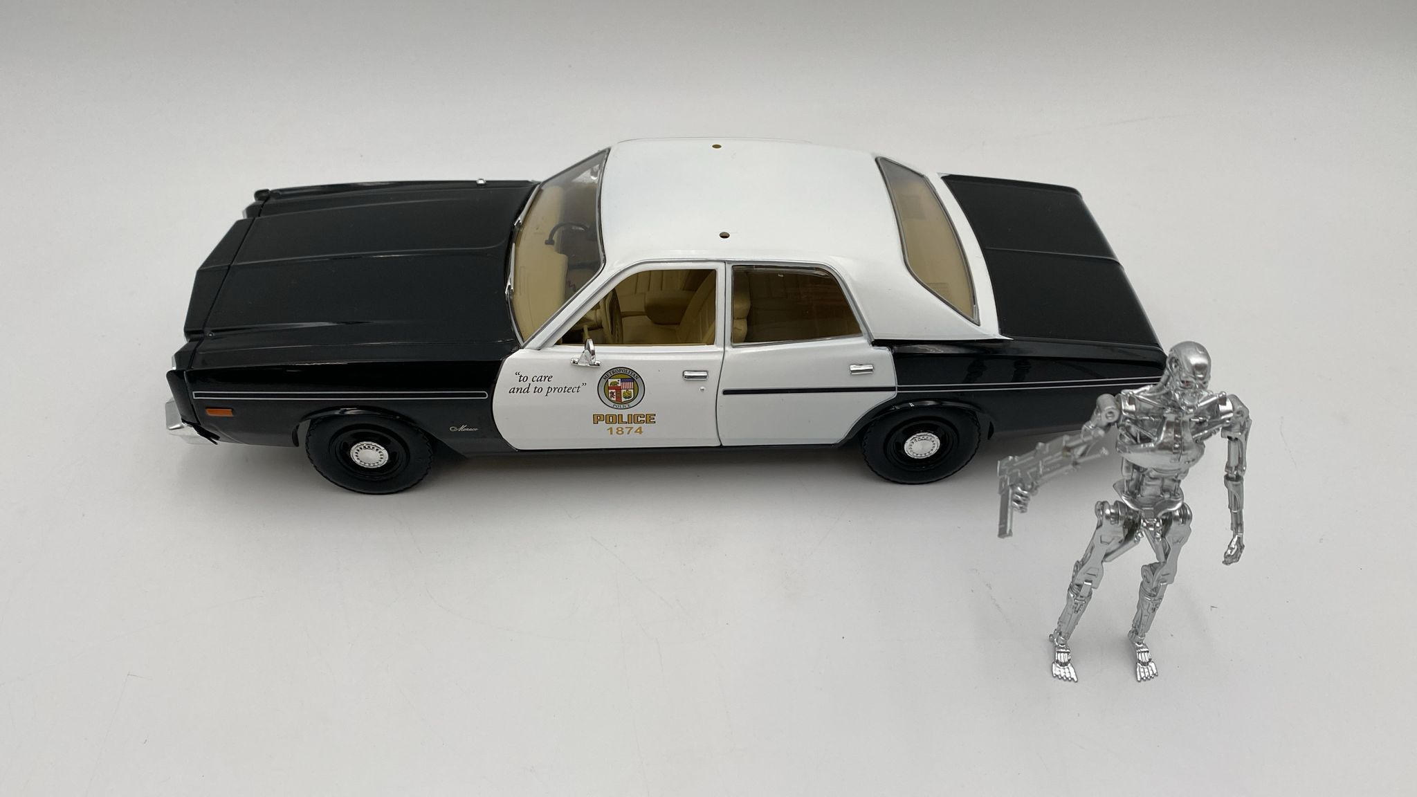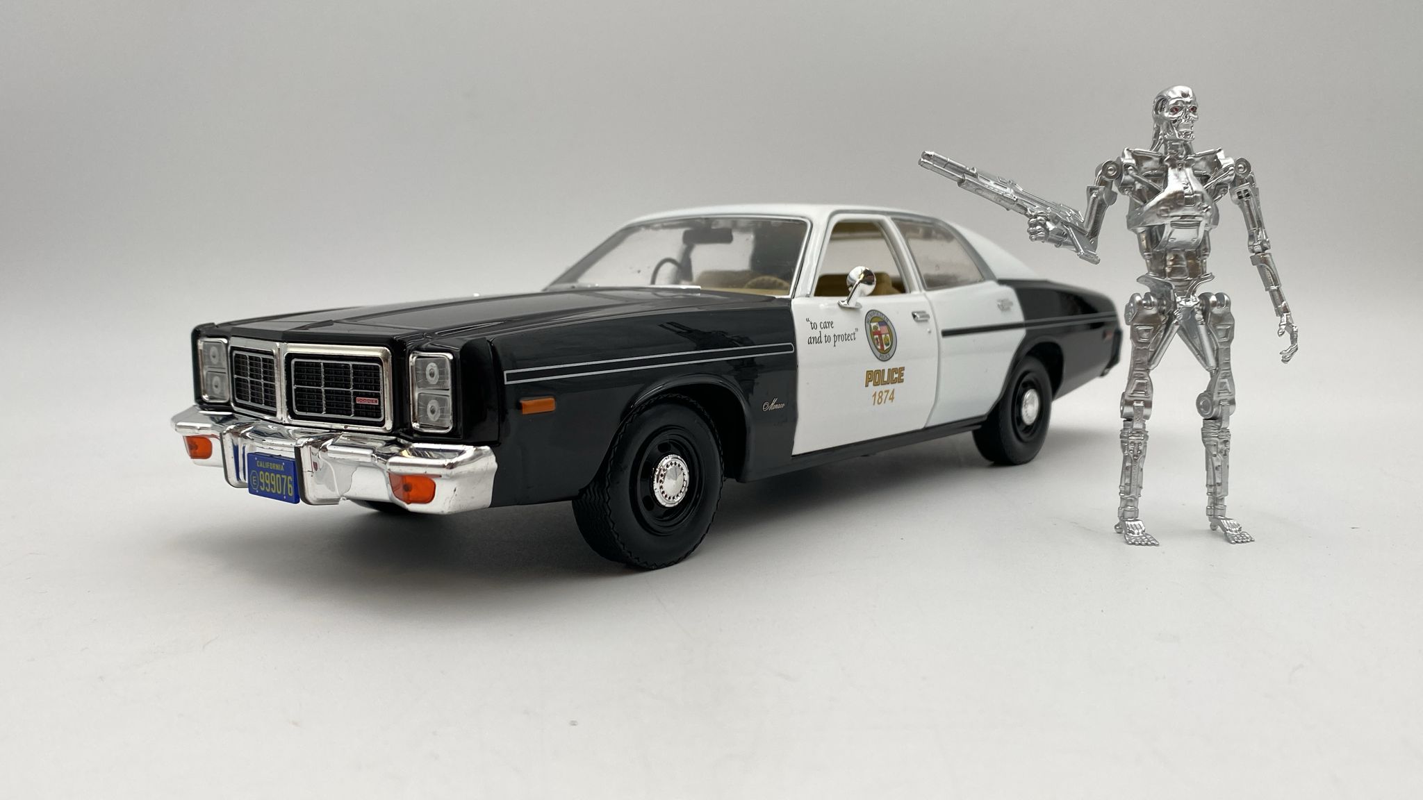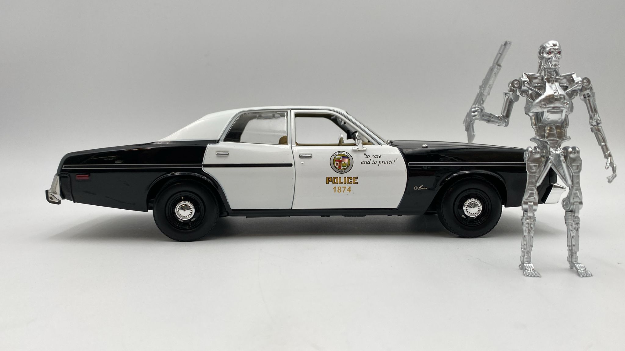 GreenLight Dodge Monaco Metropolitan Police 1977 1/18 with T-800 Endoskeleton figure The Terminator