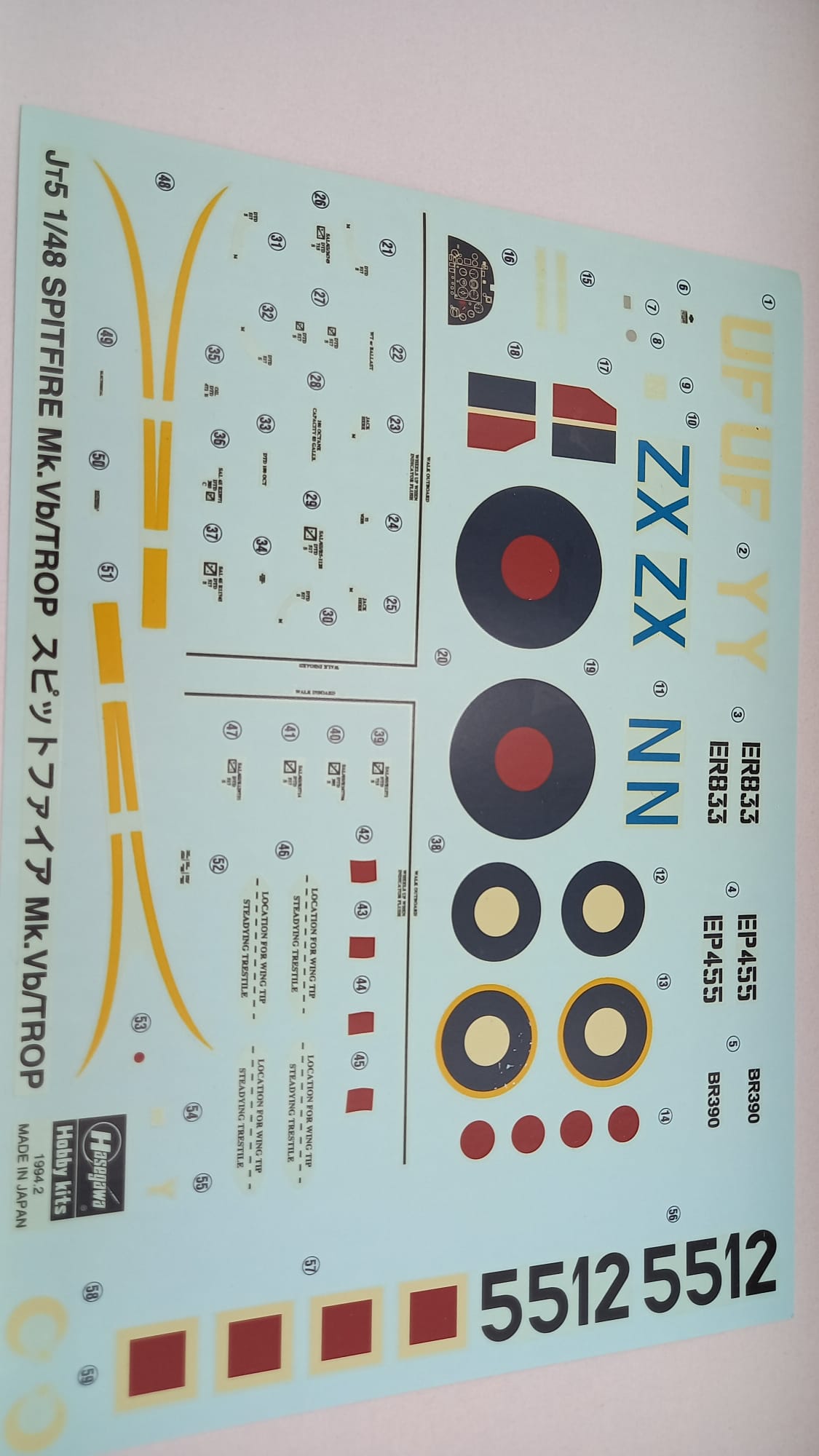 Hasegawa JT5 Spitfire Mk.Vb Trop 1/48, una decals lievemente rovinata