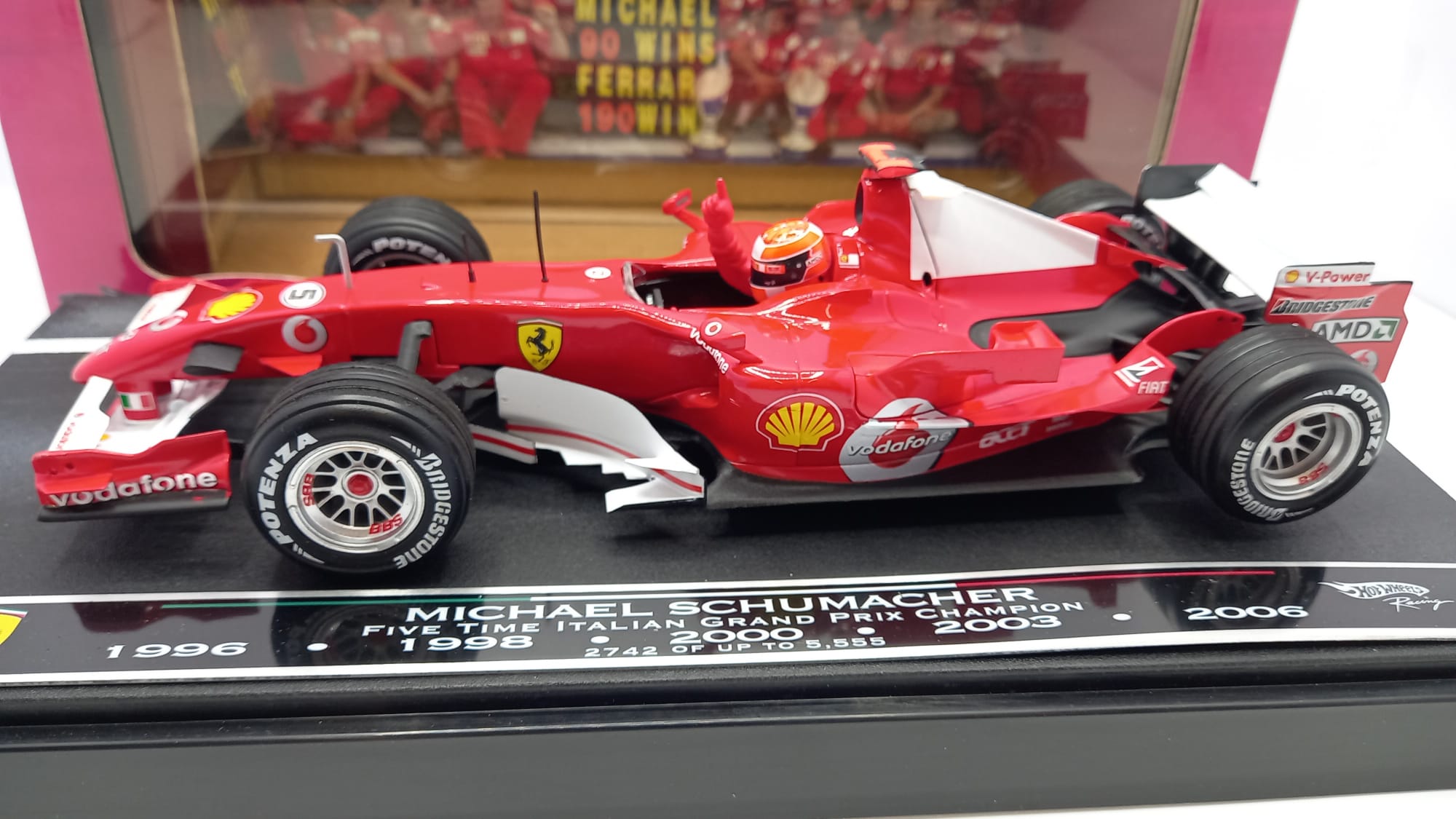 Hot Wheels Ferrari 248 F1 M. Schumacher 5 vittorie Monza 1/18