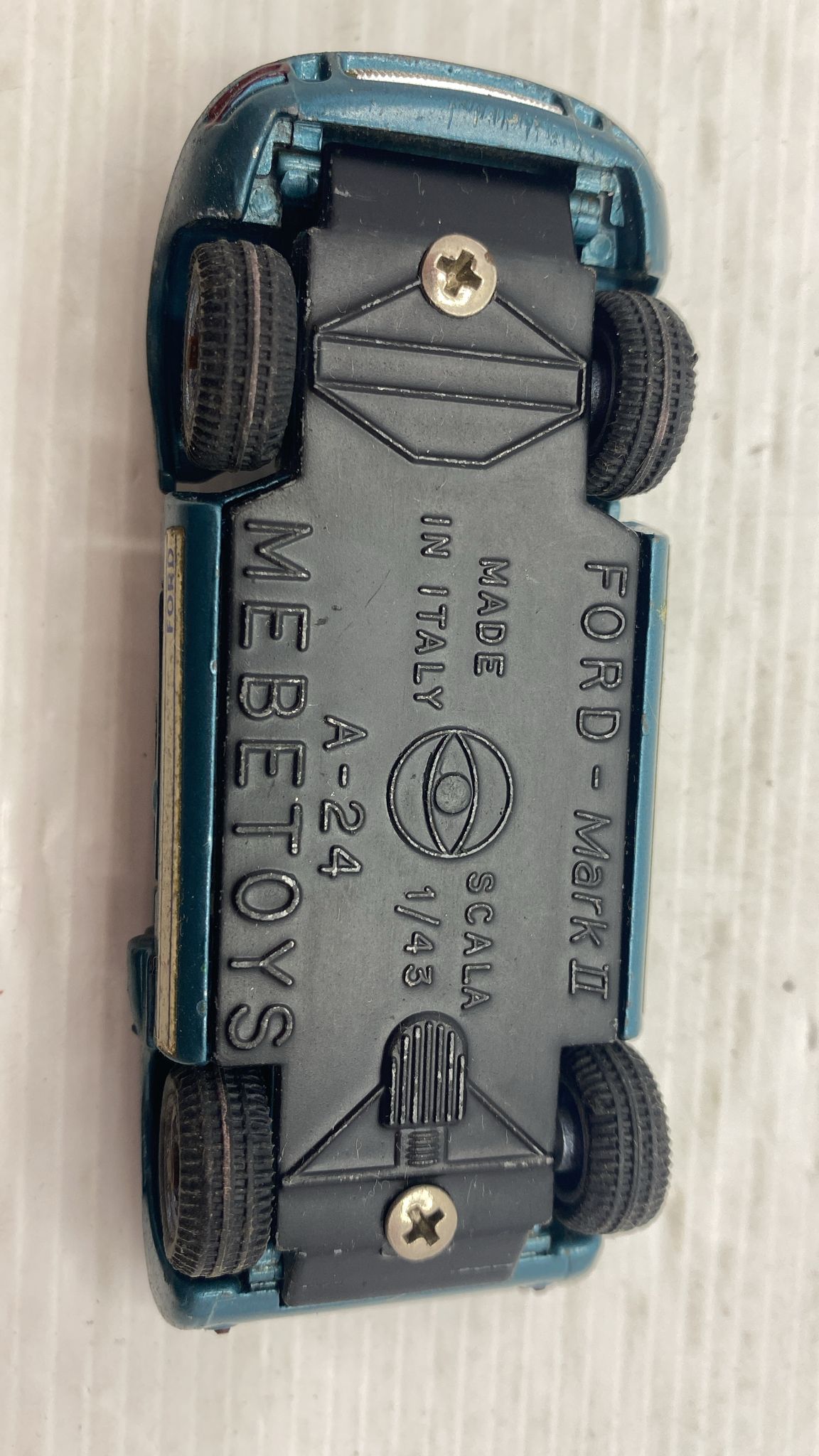 Mebetoys Ford Mark II A-24 1/43 modellino vissuto e con segni di usura e vernice rovinata, senza scatola originale