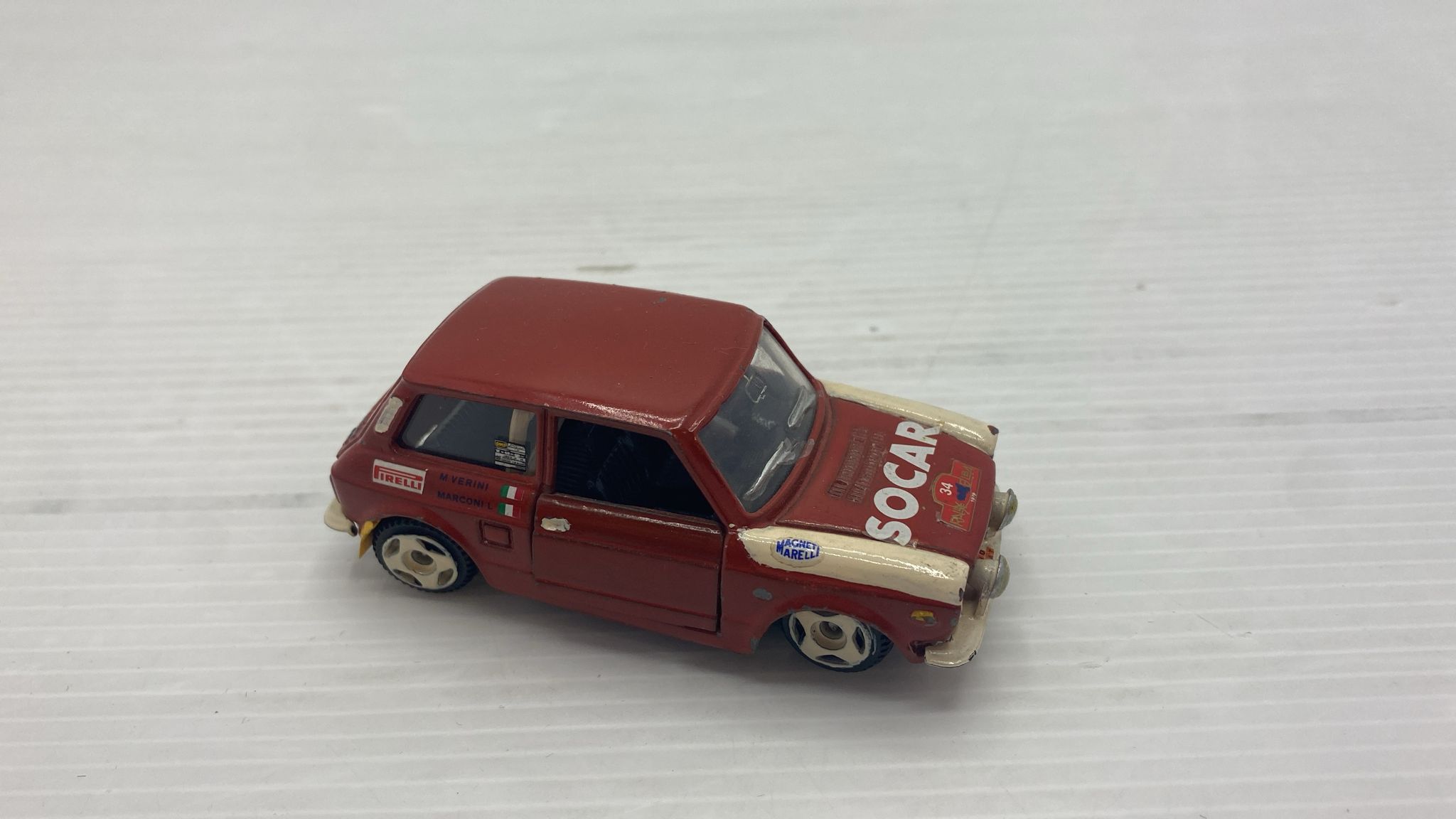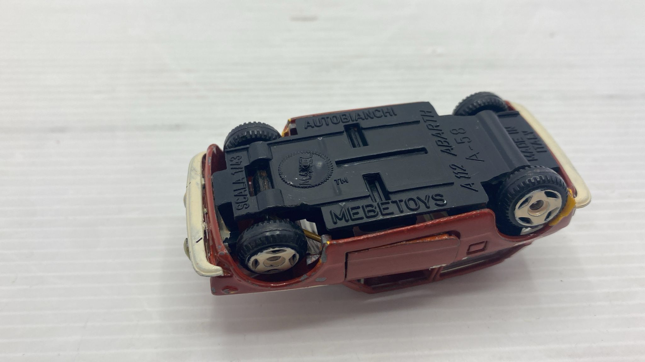 Mebetoys Autobianchi A112 Abarth 1/43 senza scatola originale, segni di usura, vernice rovinata