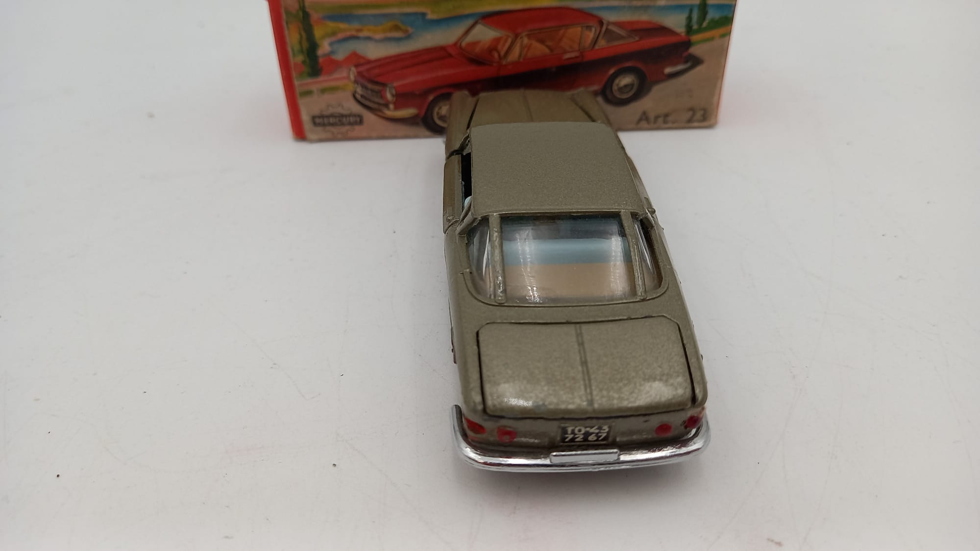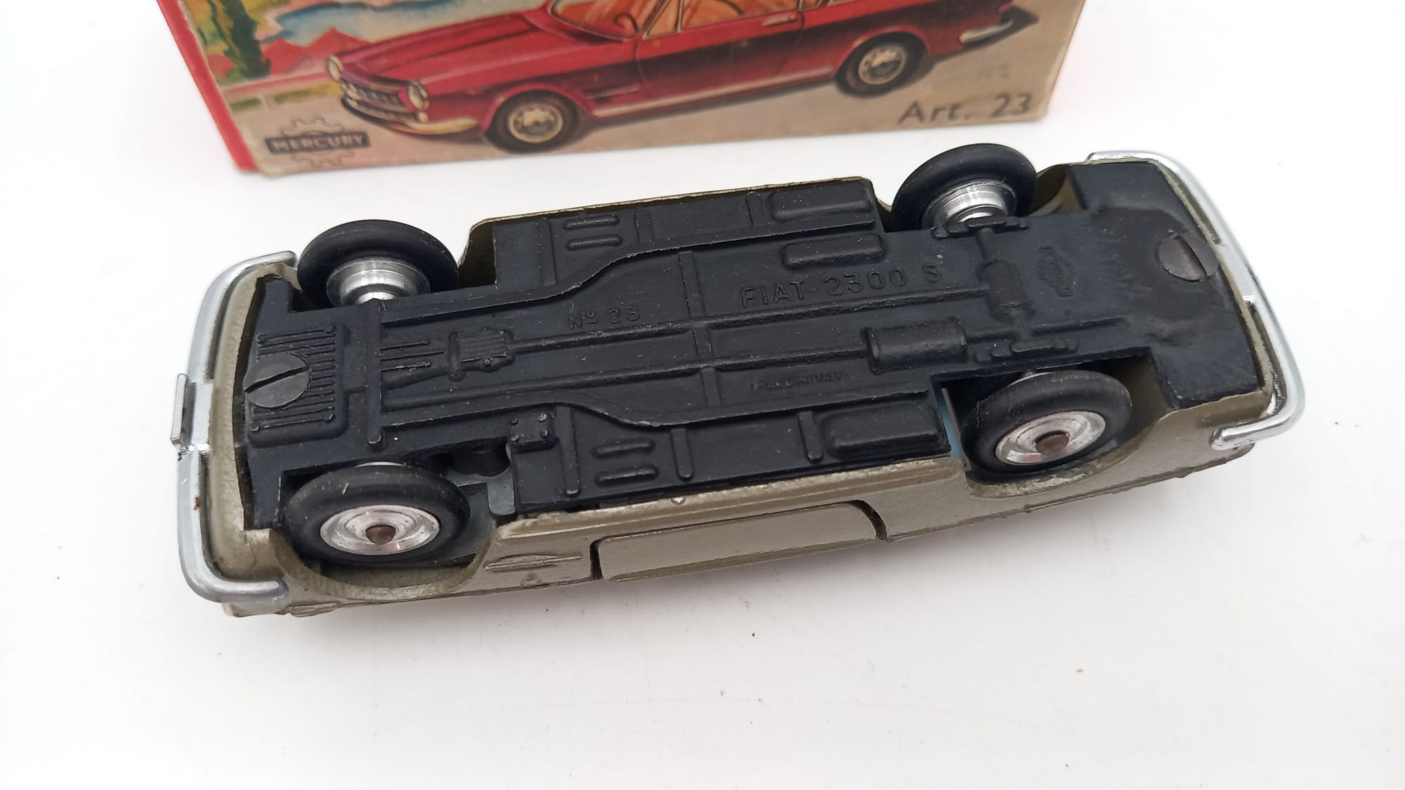 Mercury Fiat 2300 S1/43, mancante fanale posteriore sinistro, fanale anteriore sinistro rovinato, normali segni del tempo