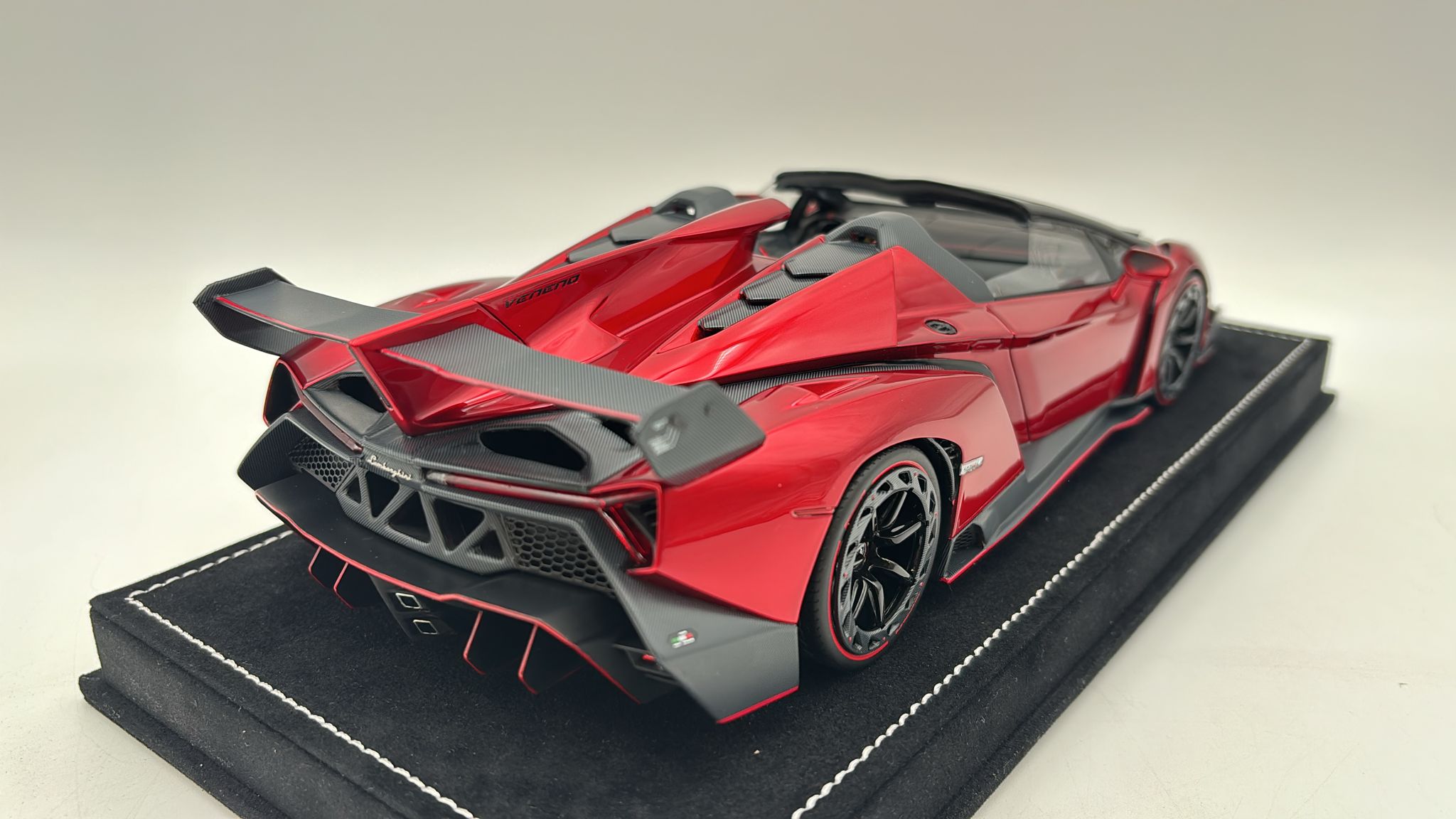 MR Collection Lamborghini Veneno Roadster 1/18 Rosso Veneno, teca rovinata