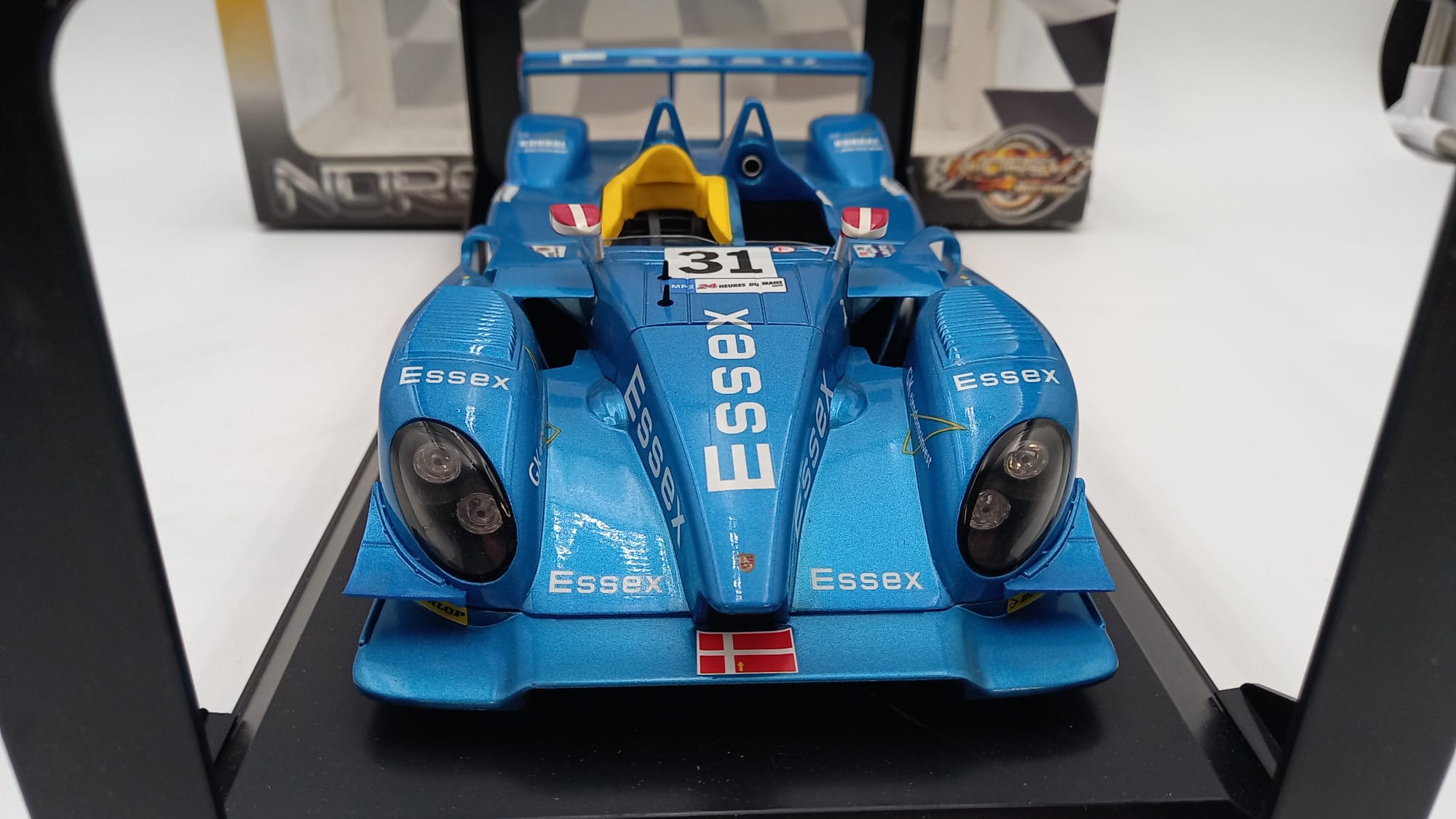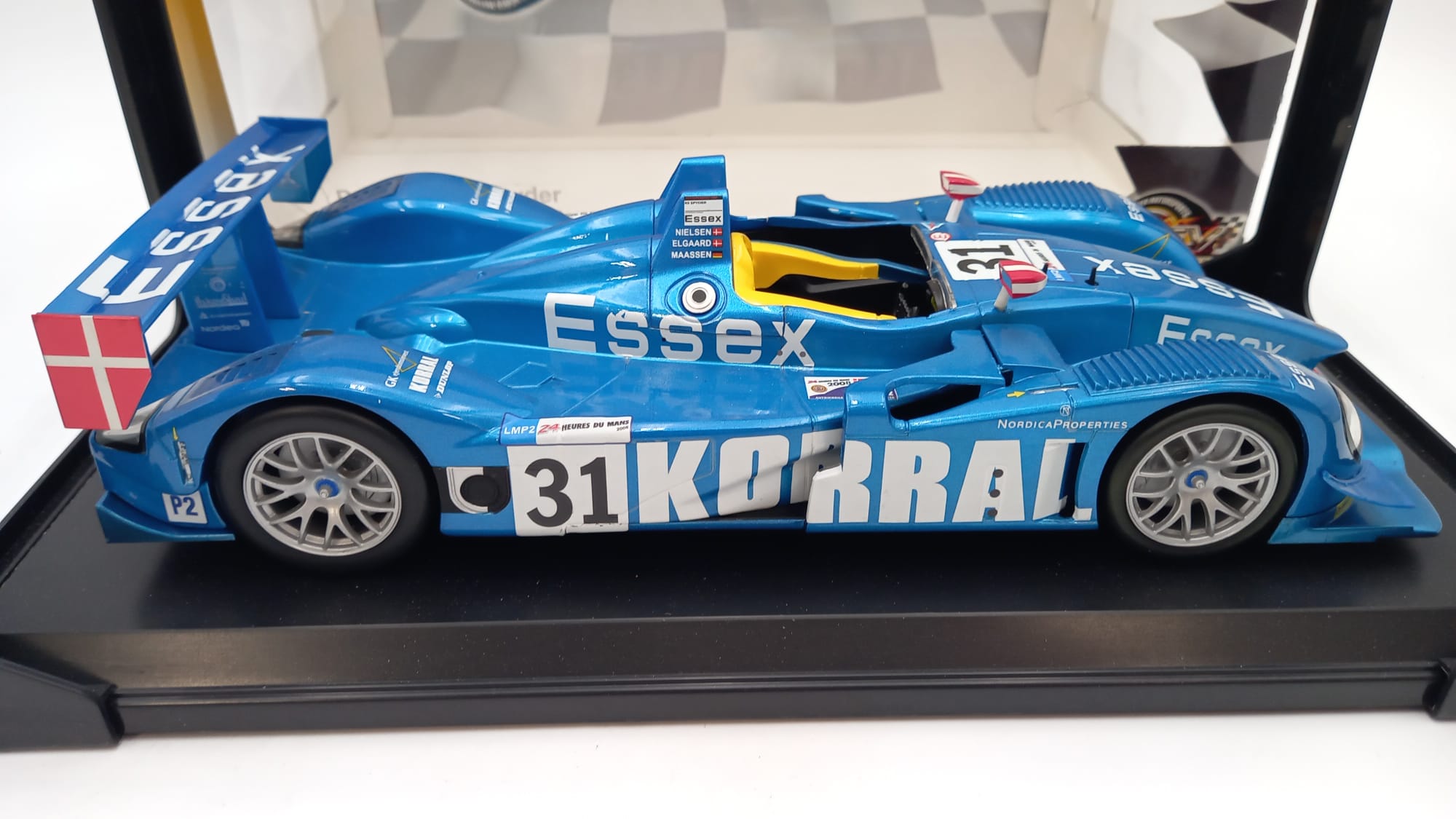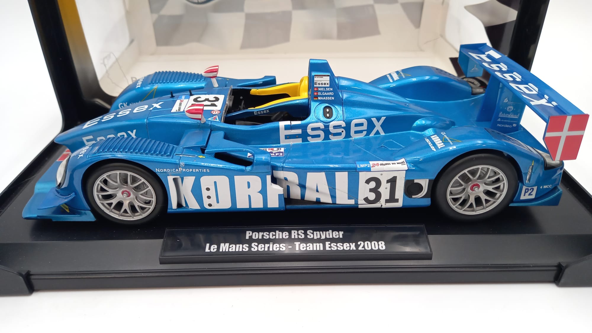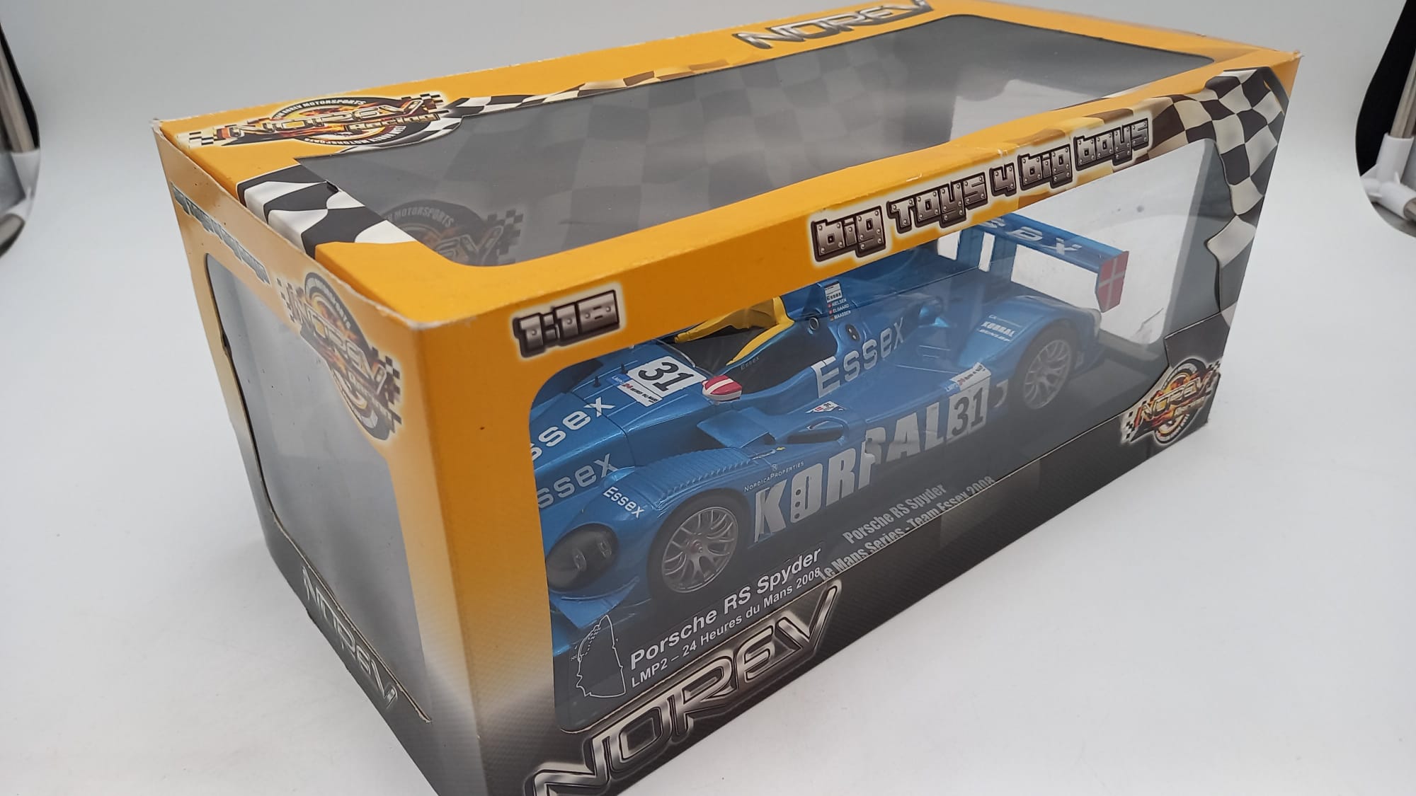 Norev Porsche RS Spyder Essex Le Mans 2008 1/18, confezione lievemente usurata