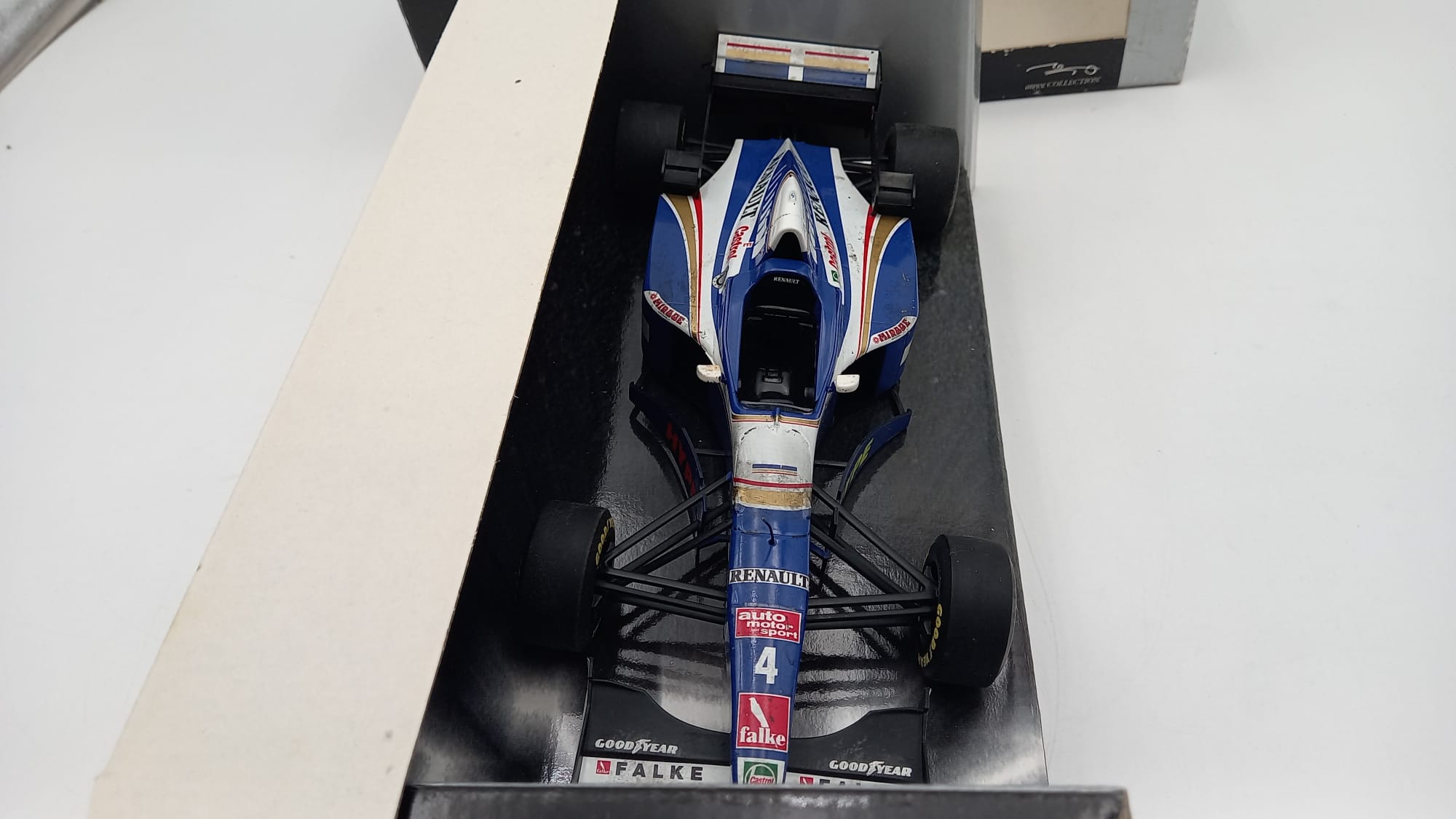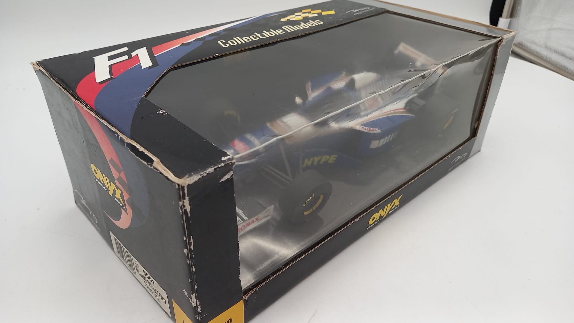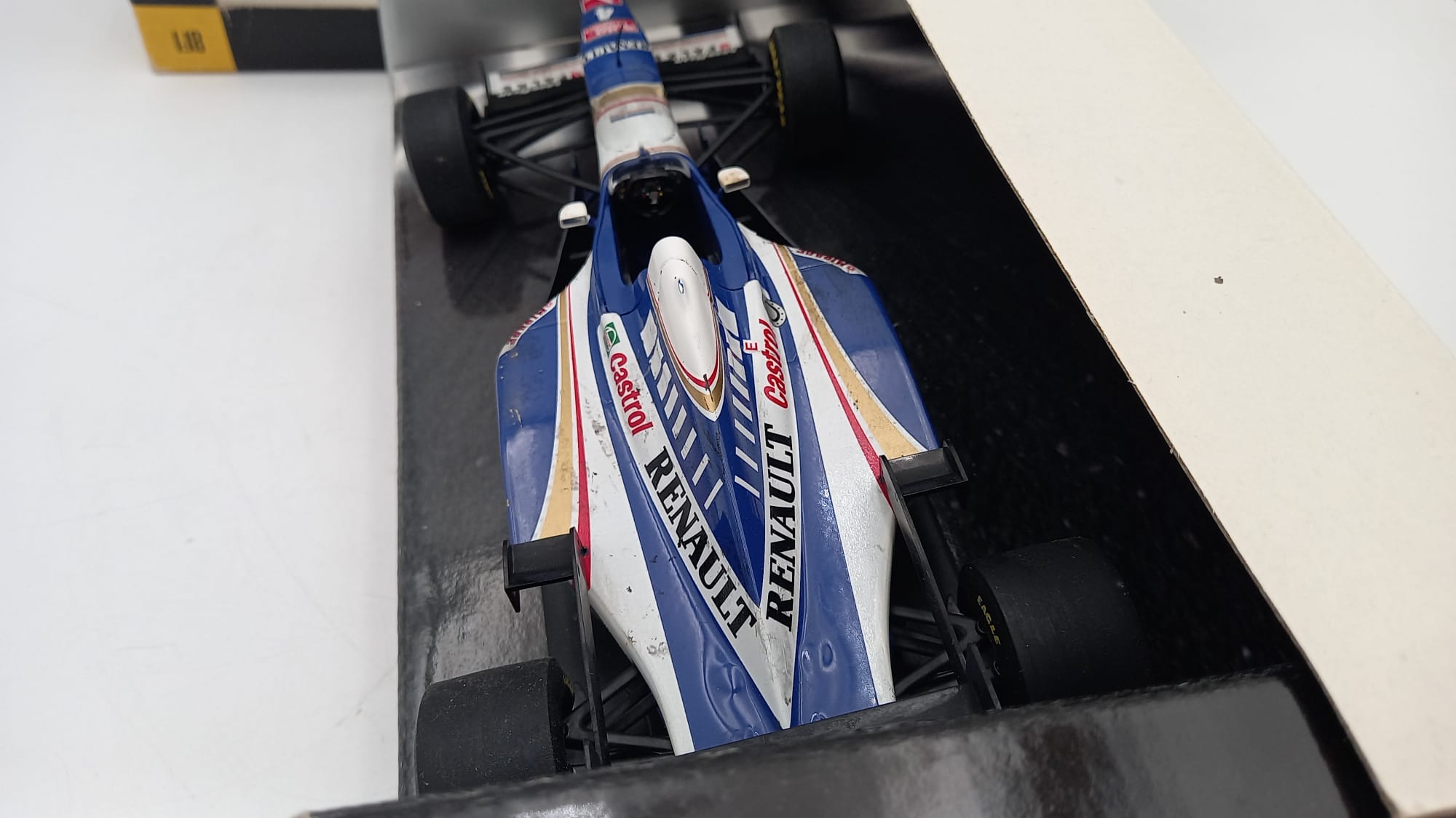Onyx Williams Renault FW17 Damon Hill 1/18, verniciatura rovinata dal tempo, confezione usurata