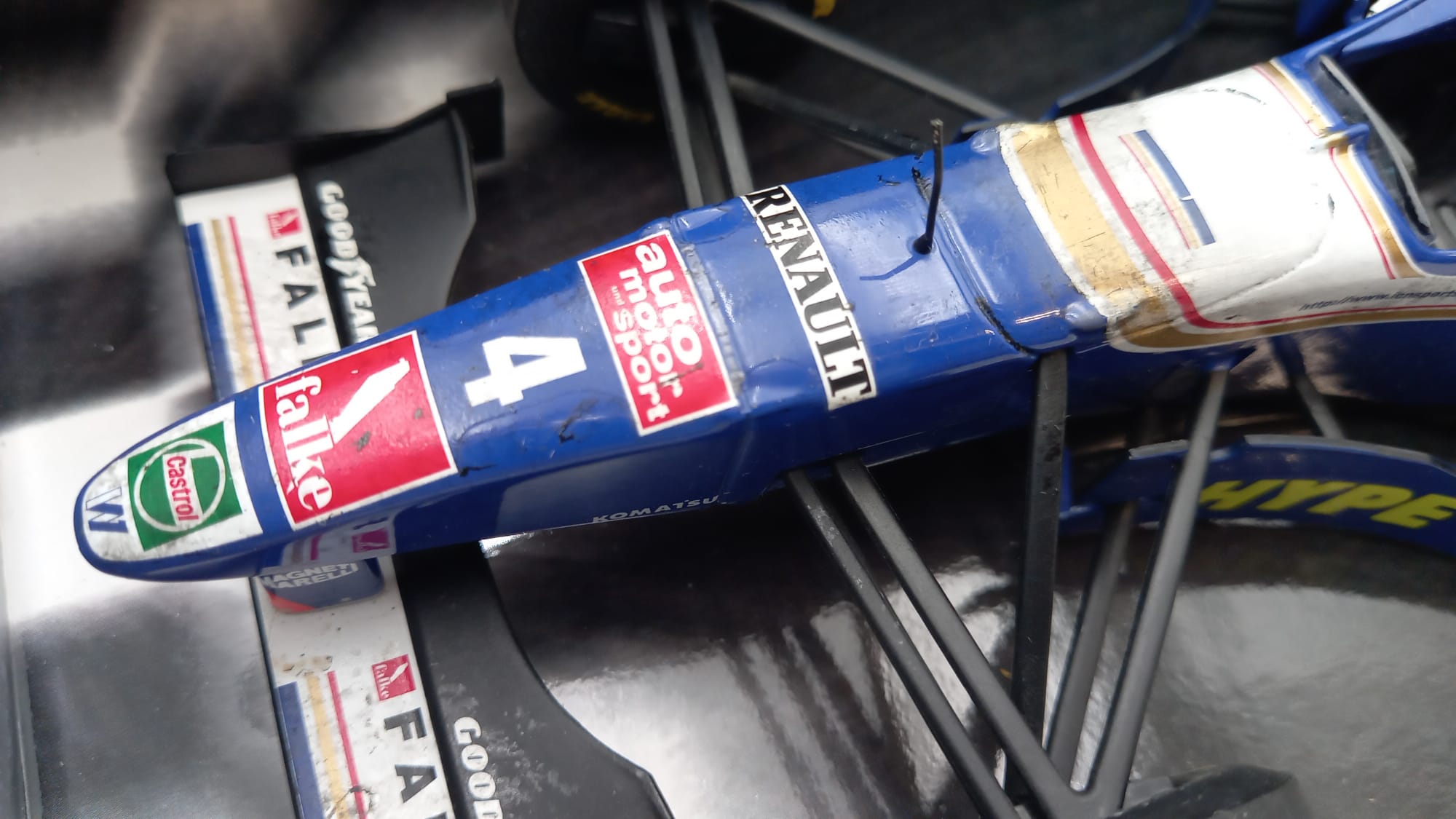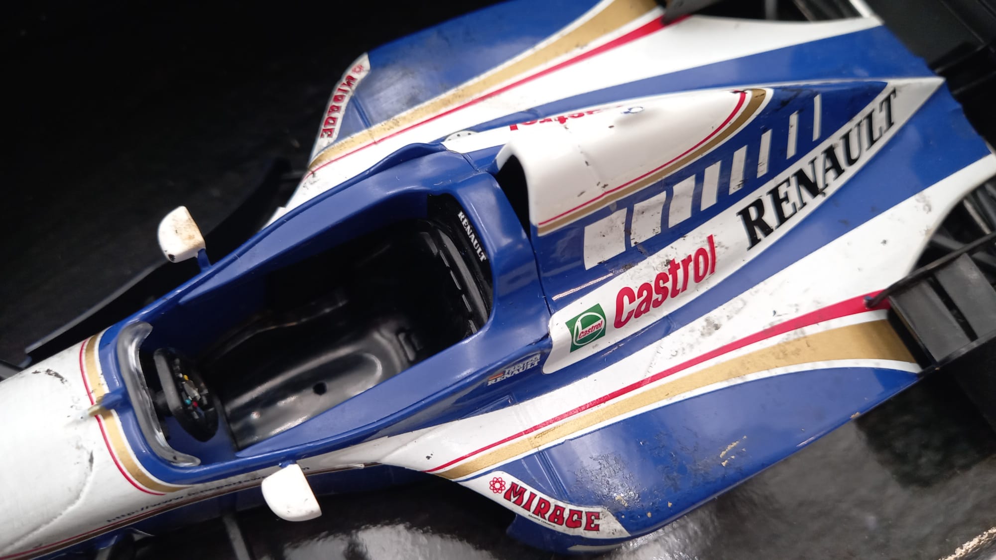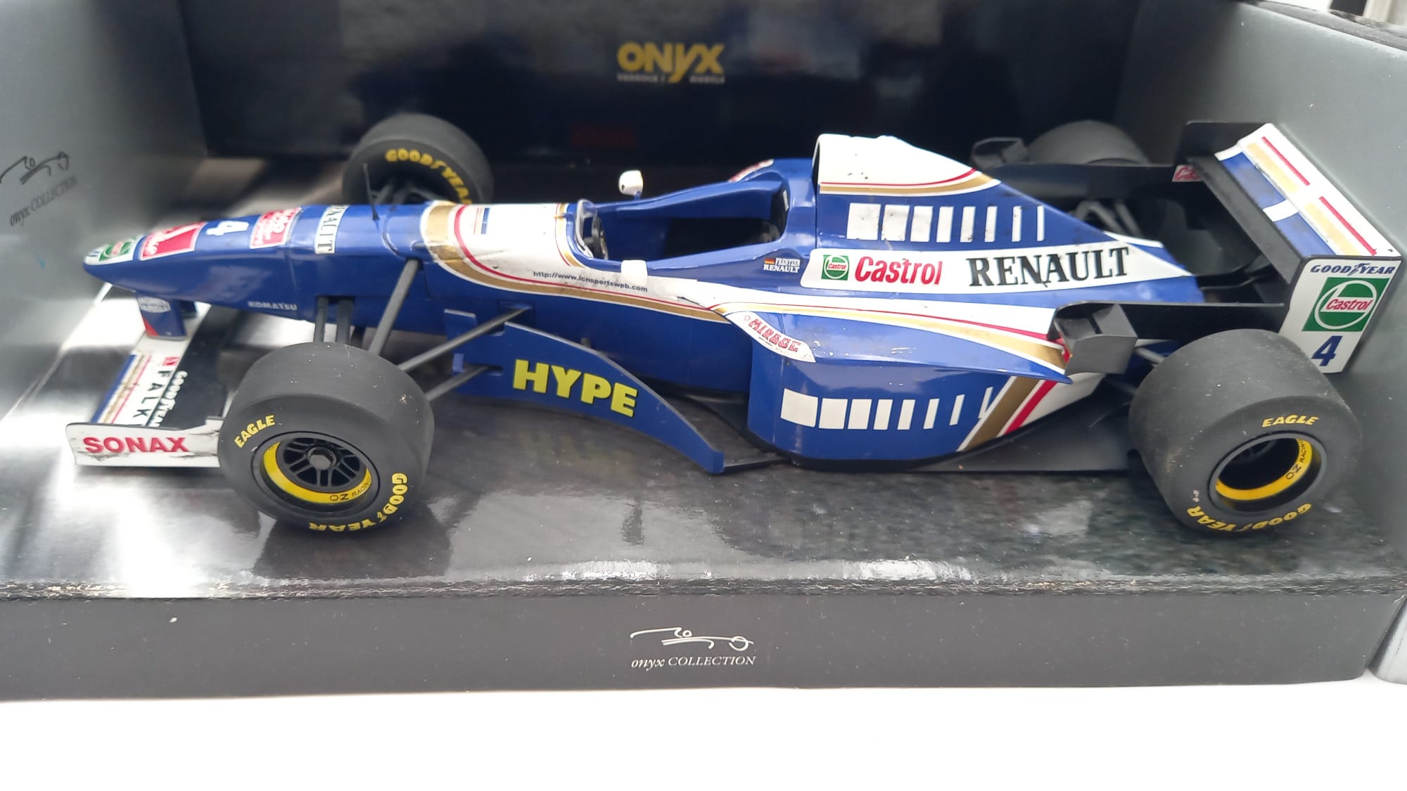 Onyx Williams Renault FW17 Damon Hill 1/18, verniciatura rovinata dal tempo, confezione usurata