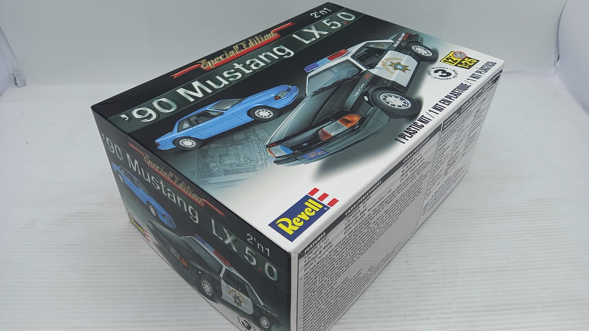 Revell Ford Mustang LX 5.0 1990 1/25, 2in1 doppia versione, kit di montaggio completo, confezione lievemente usurata