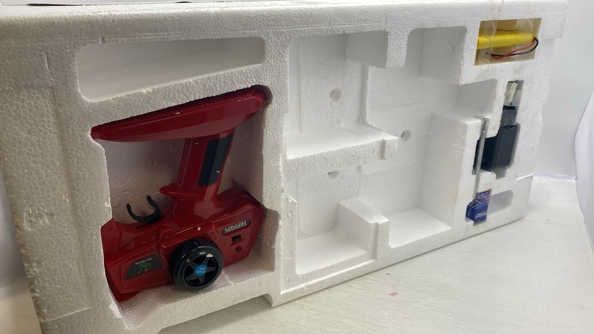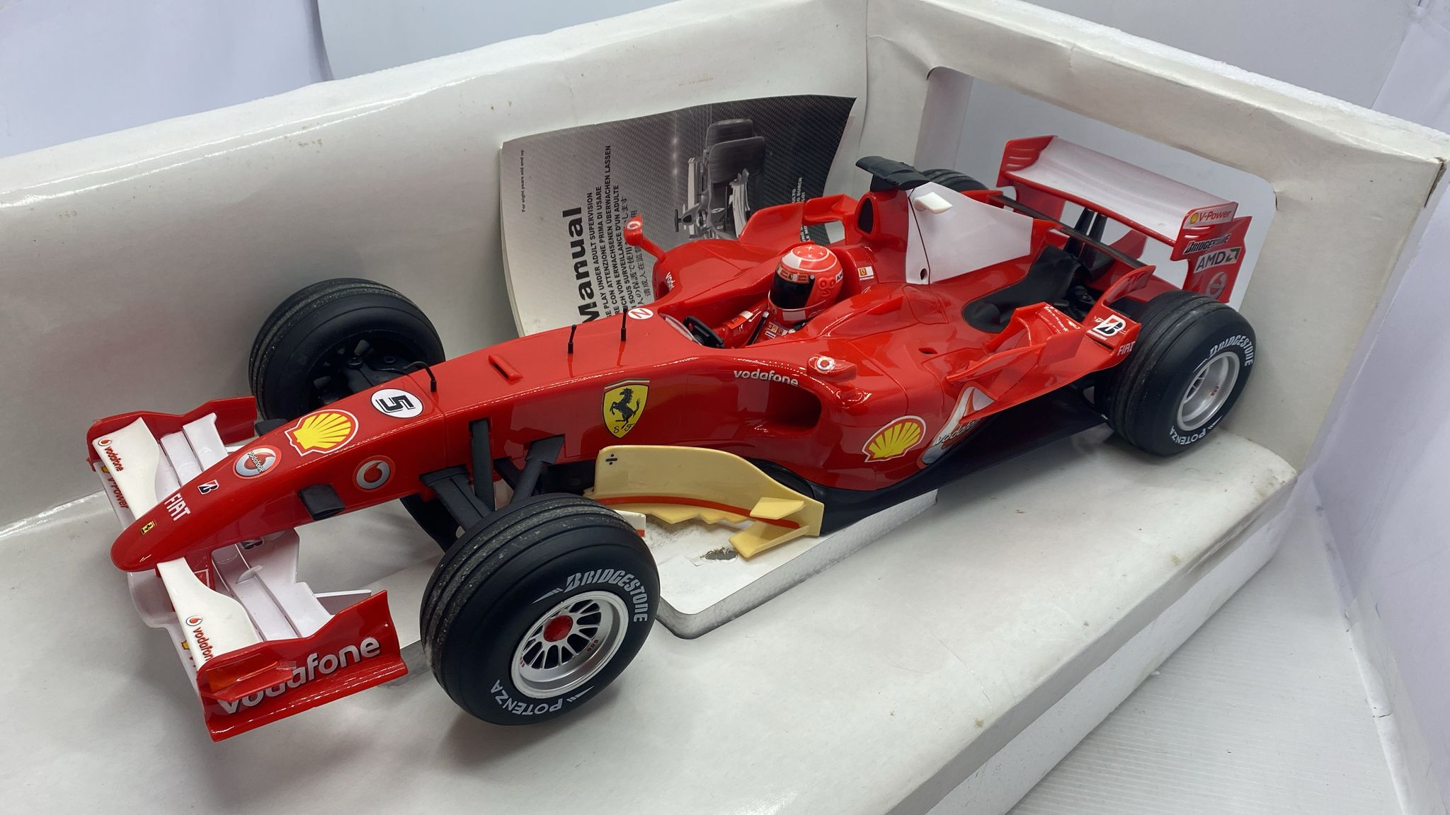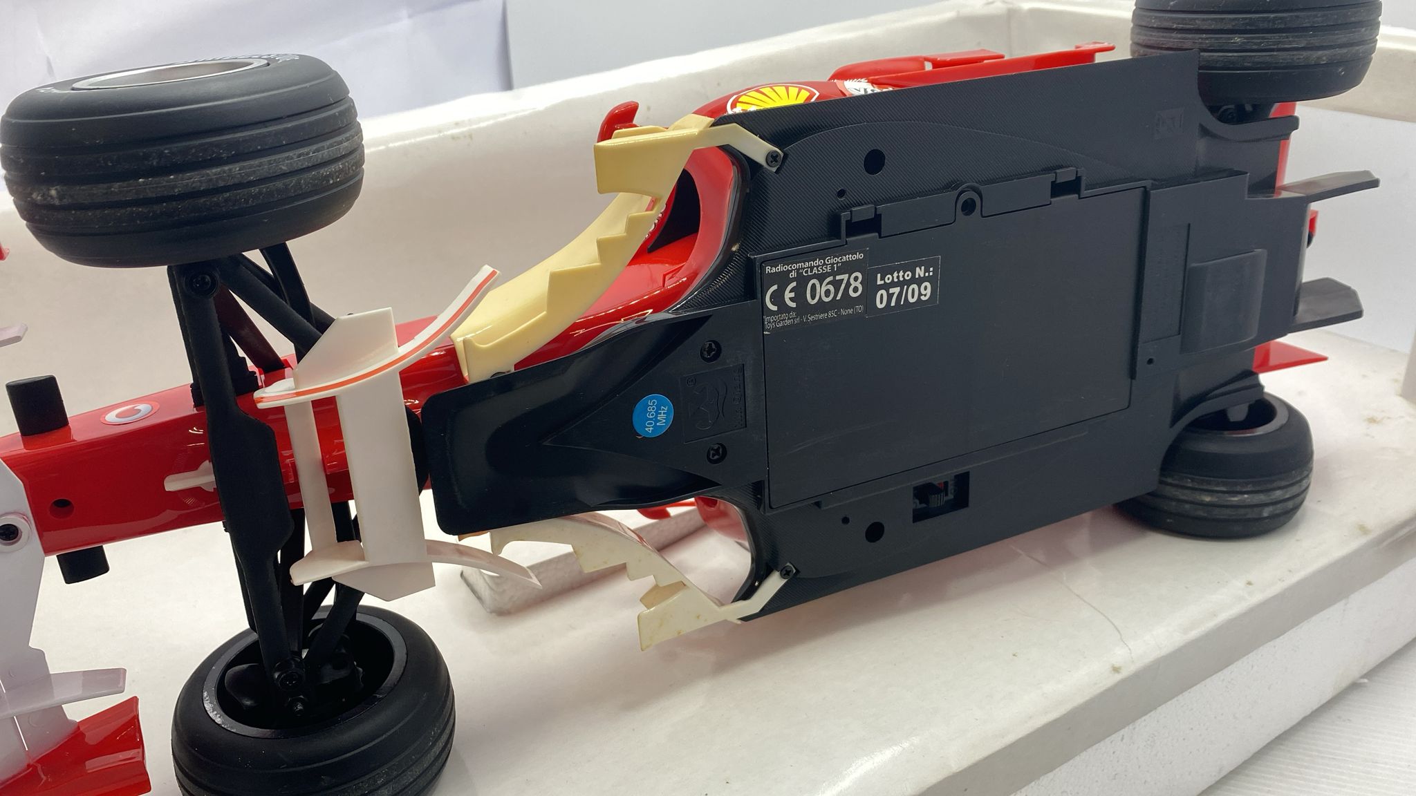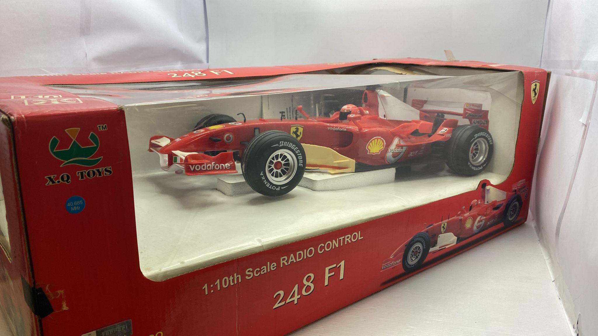 X.Q.Toys Ferrari 248 F1 radio comandata, completa di tutto, parti ingiallite, scatola rovinata, normali segni del tempo 1/10