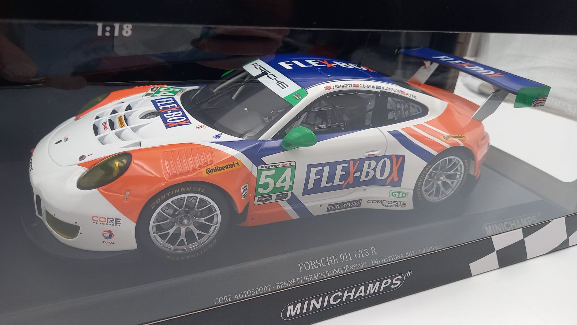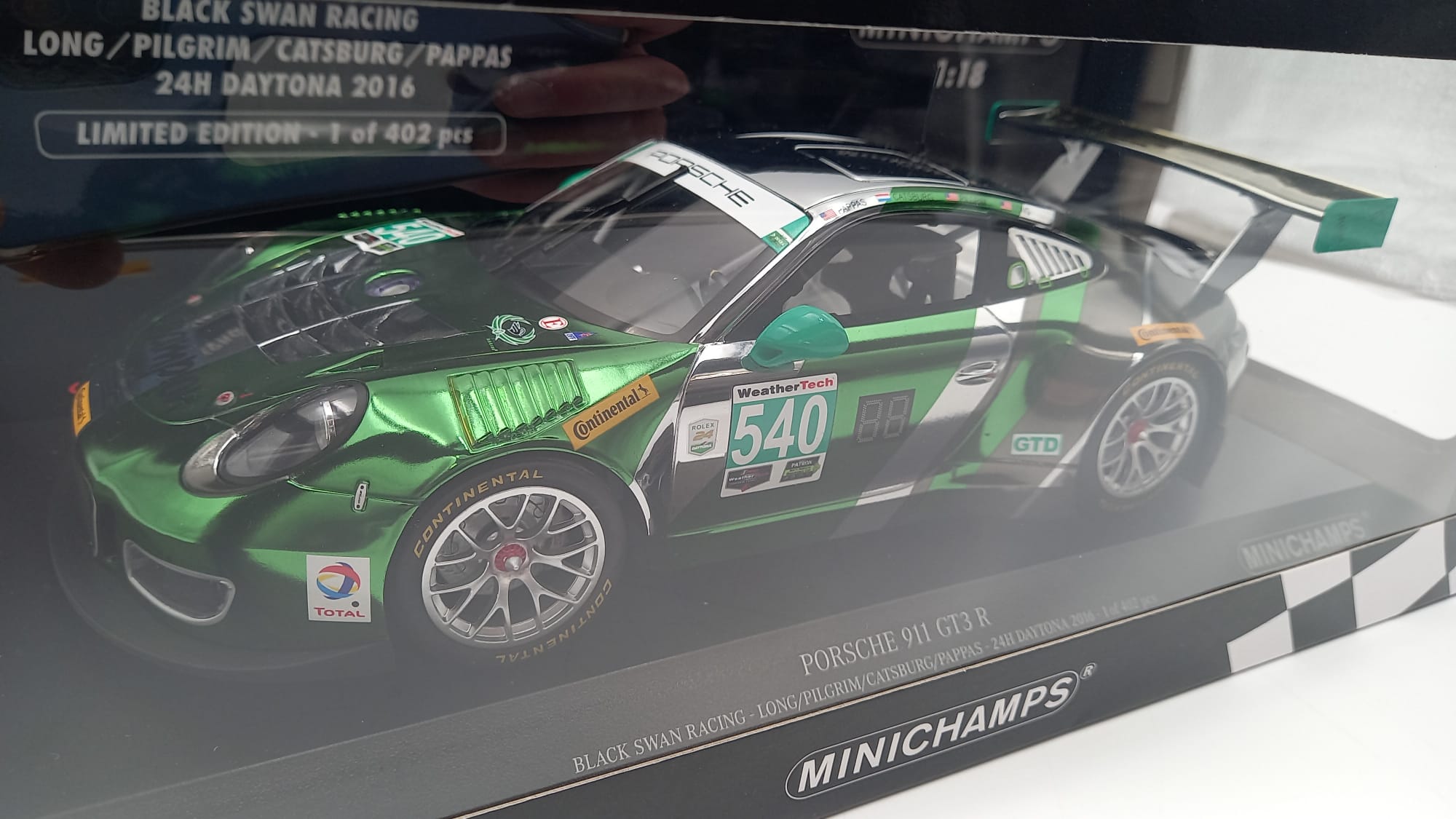 MINICHAMPS - AUTO DA CORSA Minichamps Porsche 911 GT3 R 24h Daytona 2016 1/18, confezione rovinata da un lato