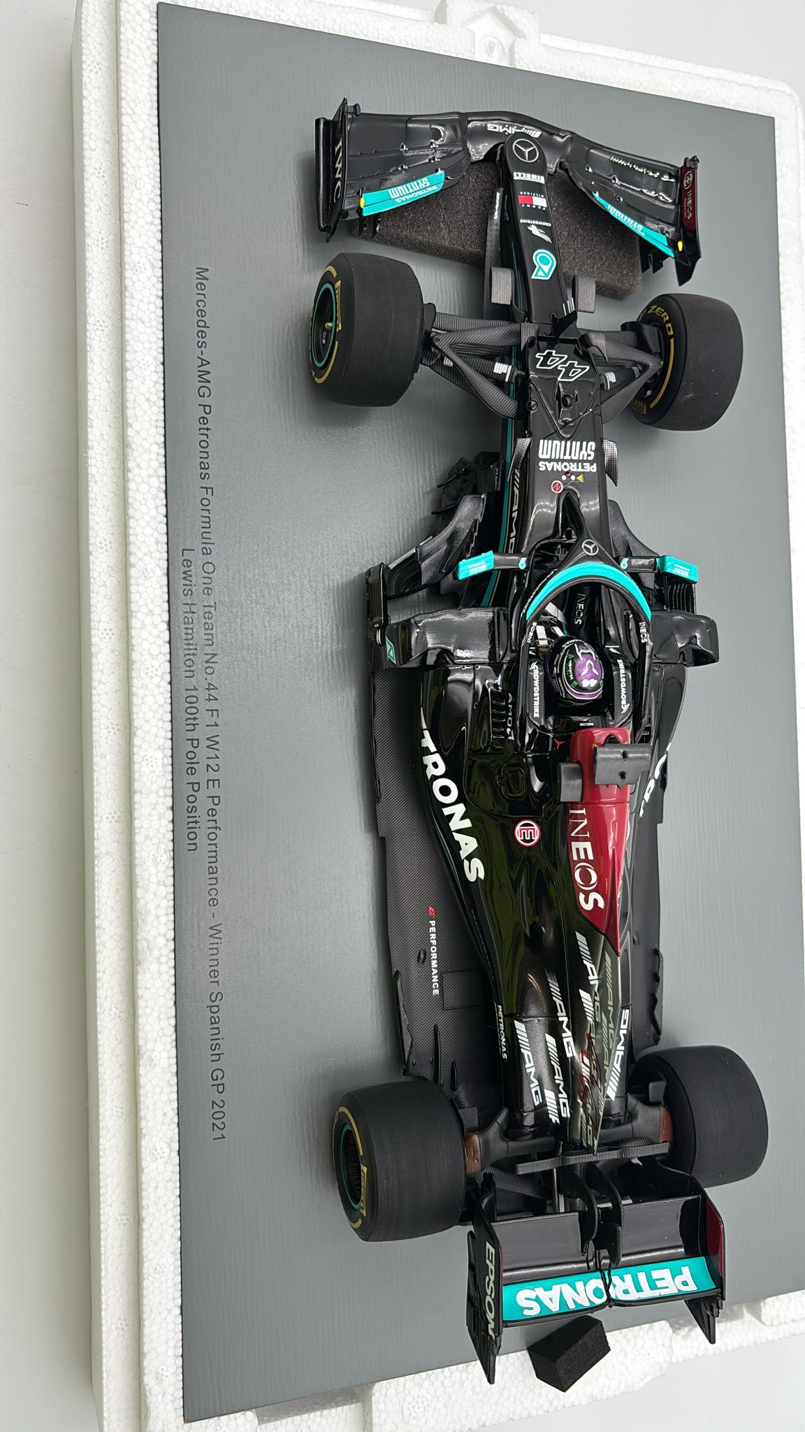 Sparkmodel Mercedes-AMG F1 W12 E Performance L. Hamilton winner Spanish GP 2021 1/18, con teca